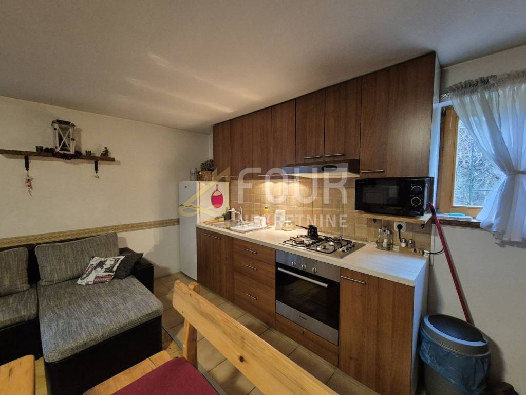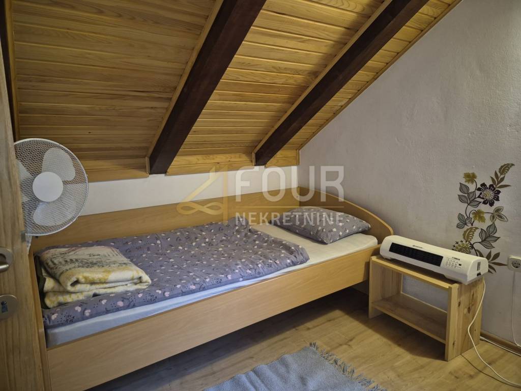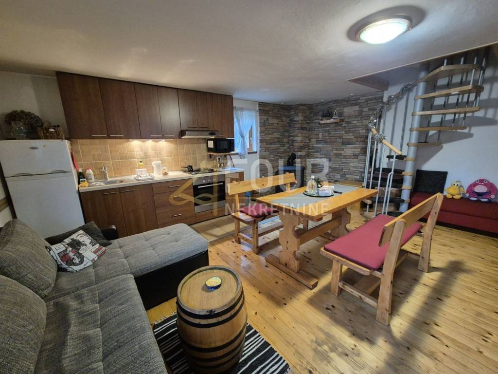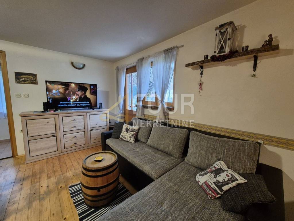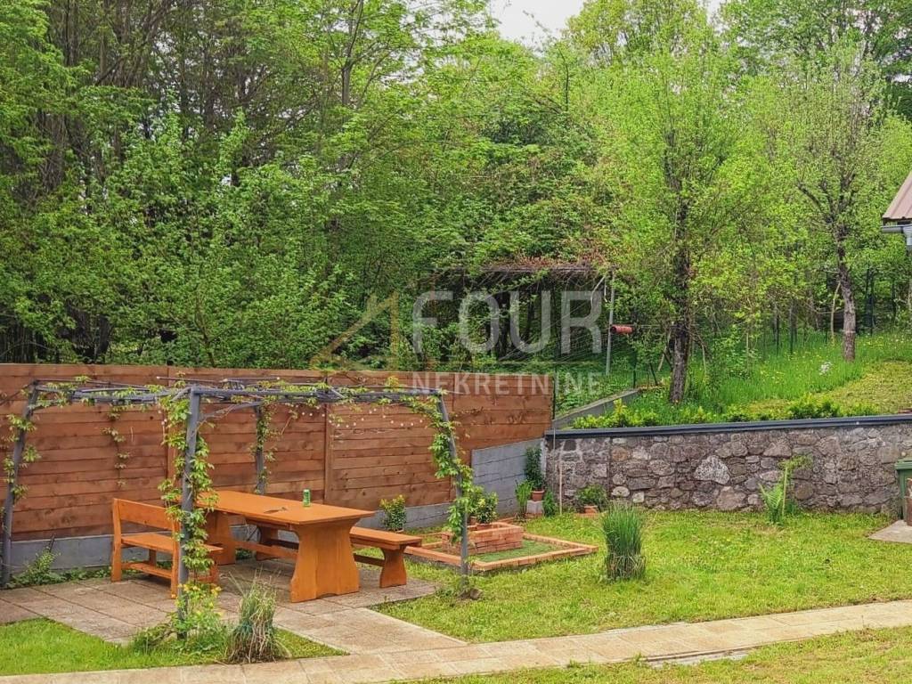 In the peaceful and elevated part of Delnice, just seven minutes drive from the city center, two detached houses are being sold together, and they are located on separate cadastral parcels. The total residential area is approximately 220 m2, and the property is situated on a plot of 886 m2 with a spacious garden of approximately 773 m2. The buildings are organized as apartment houses with a total of eight rooms and are suitable for tourist rental as well as for family use. The houses are built with concrete intermediate floor construction, have PVC joinery, a fireplace, balcony, basement, and wine cellar, and the garden features a garden and barbecue. Three parking spaces are provided. The newer house was built in 2017, while the older one was renovated in 2021. The first, older house is partially renovated, with a permit for use before 1968. In the basement, there is a space for socializing with a jacuzzi and additional storage. On the first floor, there is a living room with a kitchen and wood stove, a bedroom, and a bathroom. The spaces are partially decorated with covered walls, laminate flooring, and PVC joinery. The attic is unfinished, providing the possibility of further extension, and the roof is older but in good condition. The second house was built in 2017, has a permit for use, and is successfully rented out for tourist purposes. It consists of a basement, an open-plan living room with a kitchen and dining area, and a bathroom on the first floor, while the attic has two bedrooms. The garden is spacious and surrounds both houses, with a designated area for socializing, a barbecue, and benches. This property represents an excellent investment opportunity due to the established tourist rental, attractive location, and potential for further development. It is ideal for those seeking peace, nature, and a secure return on investment in the heart of Gorski Kotar. Dear clients, agency commission is charged in accordance with the General Terms and Conditions.