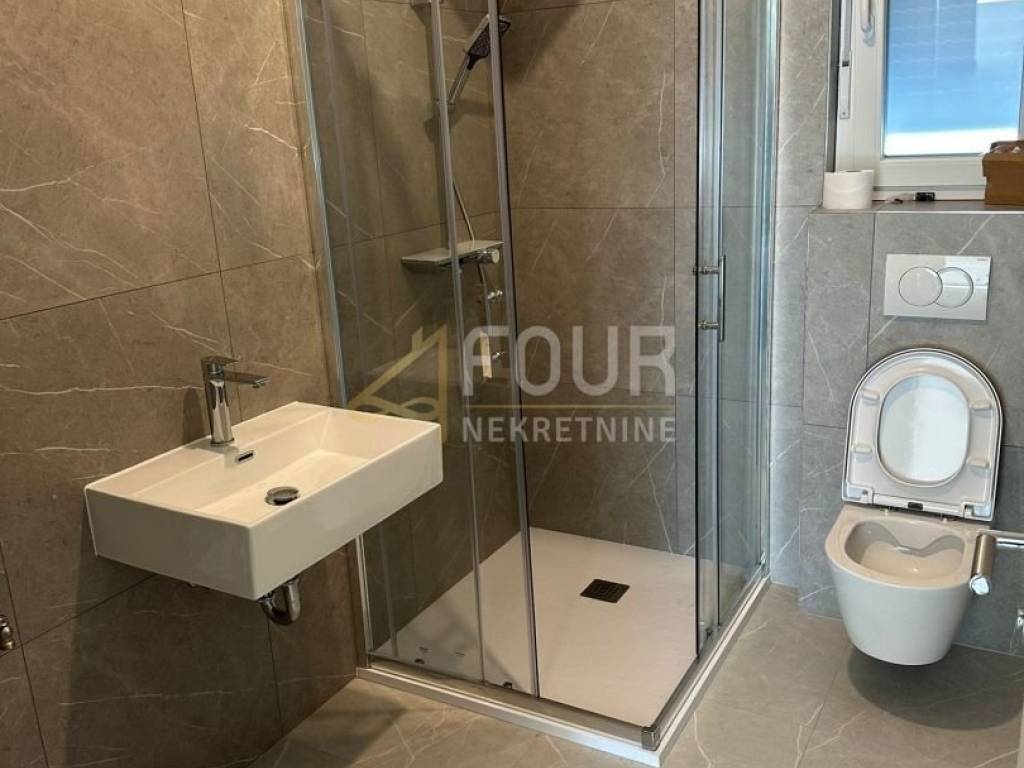 An apartment on the ground floor of a modern new building in Viškovo is for sale, located in a quiet and pleasant environment. The apartment has a total net usable area of 57.67 m2 and consists of a kitchen with dining area and living room with access to a balcony, hallway, entrance hall, two bedrooms, and a bathroom. The orientation of the apartment allows plenty of natural light throughout the day. A special advantage of this property is the spacious garden area of 154.74 m2 which is connected to a terrace and extends around and behind the building, providing privacy and numerous possibilities for arranging a garden or outdoor living space. The apartment also includes two outdoor parking spaces. It is equipped with quality materials and modern systems, including underfloor heating with a heat pump and aluminum windows, ensuring high energy efficiency and a comfortable stay throughout the year. A woodshed is also included with the apartment. Dear clients, agency commission is charged in accordance with the General Terms and Conditions of business.