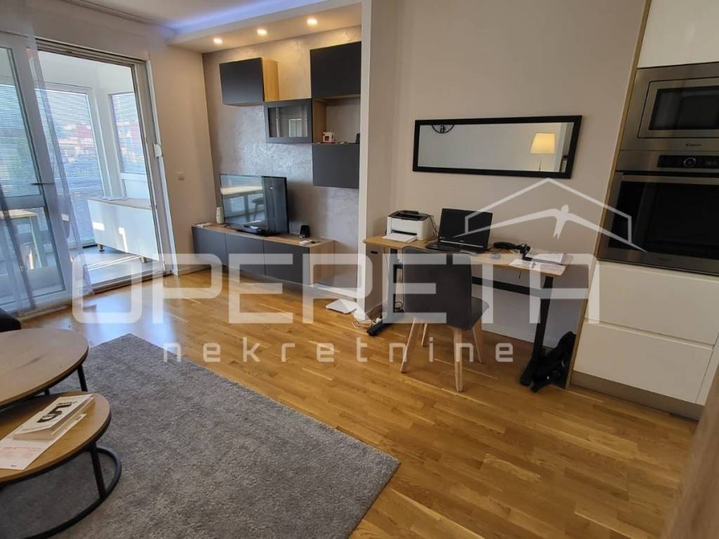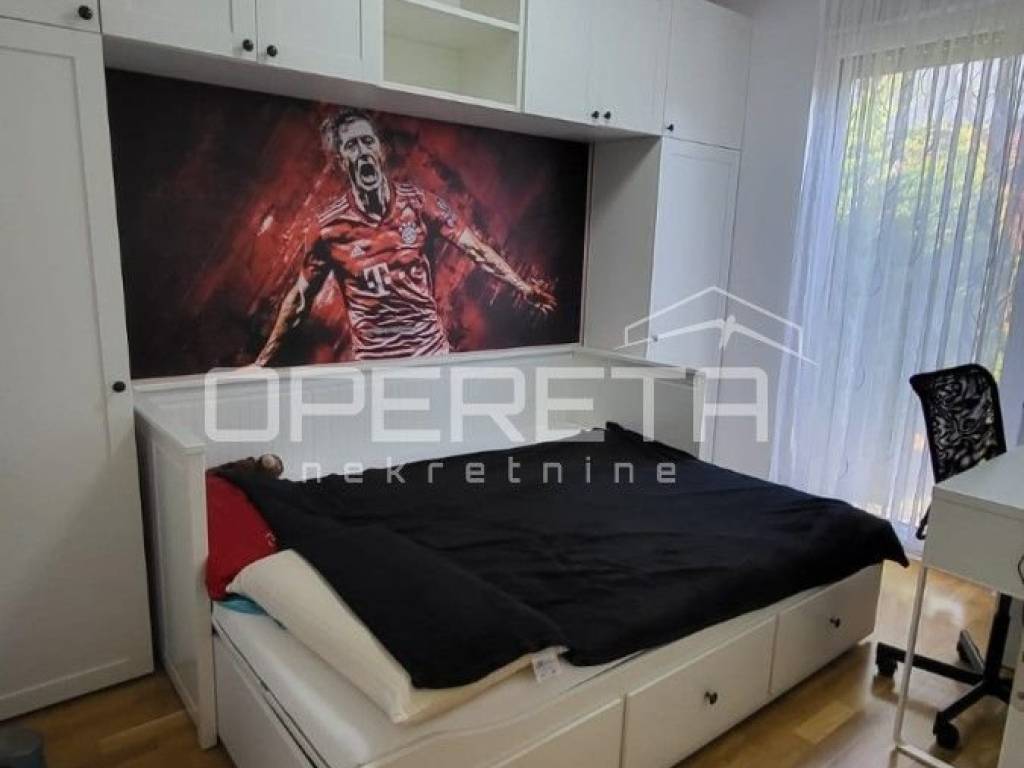 kojem pripadaju sporedni dijelovi - balkon tlocrtne površine 2,97 m2 (zimski vrt trenutno), vrt obračunate površine 25,03 m2, te parkirališno mjestom površine 6,90 m2, ukupne netto korisne površine od 86,95 m2 (dodatno po elaboratu dva PM na korištenje koja nisu dio navedene kvadrature). Stan ima dvije spavaće sobe iz kojih se izlazi na terasu (natkrivena) i vrt, dnevni boravak u komunikaciji sa kuhinjom i izlazom na balkon/zimski vrt te kupaonicu sa wc-om. Nalazi se na mirnoj lokaciji u sklopu kompleksa kojeg čine preko 10 zgrada novije gradnje istog investitora. Prodaje se kompletno namješten. U odličnom je i uščuvanom stanju. Preporuka agencije!