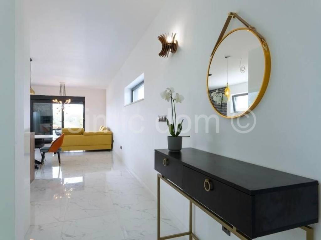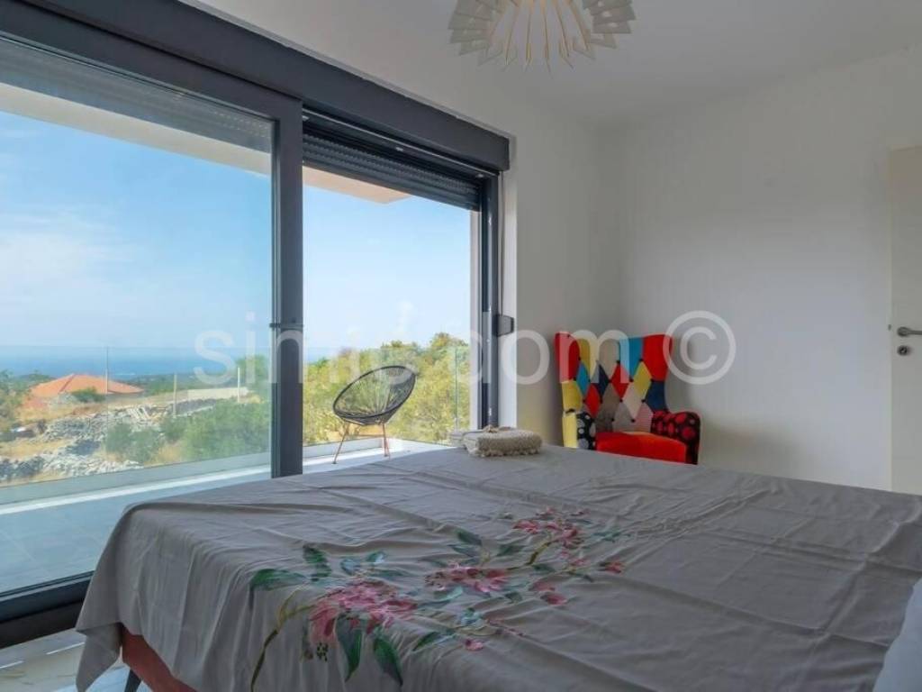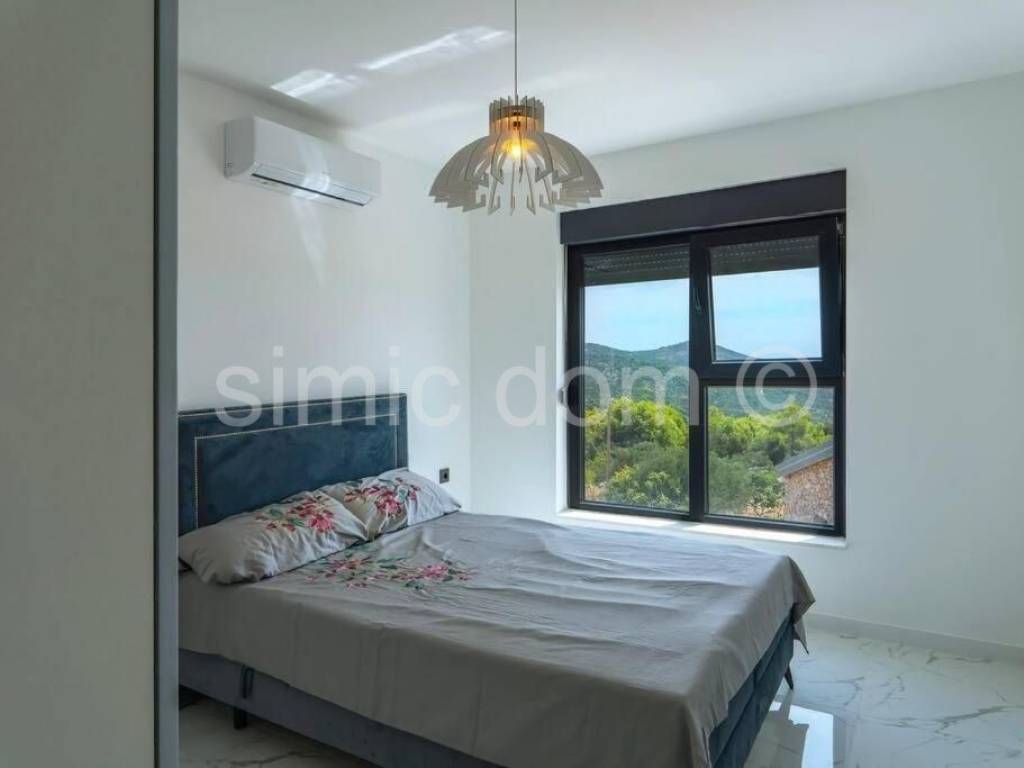We are mediating the sale a beautiful villa, only two years old, located in a very quiet location with an open view of the sea and the entire town. The villa has an area of 180m2 and has a ground floor and first floor with a total of three bedrooms, two bathrooms and an impressive living room with kitchen and dining room. This beautiful villa stands out with a large terrace with a heated swimming pool and an attractively landscaped garden that also offers a parking space. The house is very modern and functionally furnished with top-quality equipment (several air conditioners, alarm system, modern ceramics and carpentry, etc.), which, combined with the exceptional quality of construction, guarantees a high return on investment. The location is very quiet (above the town itself), and all amenities such as shops and restaurants are within less than a 5-minute drive. The property is immediately move-in ready. Ownership is neat.