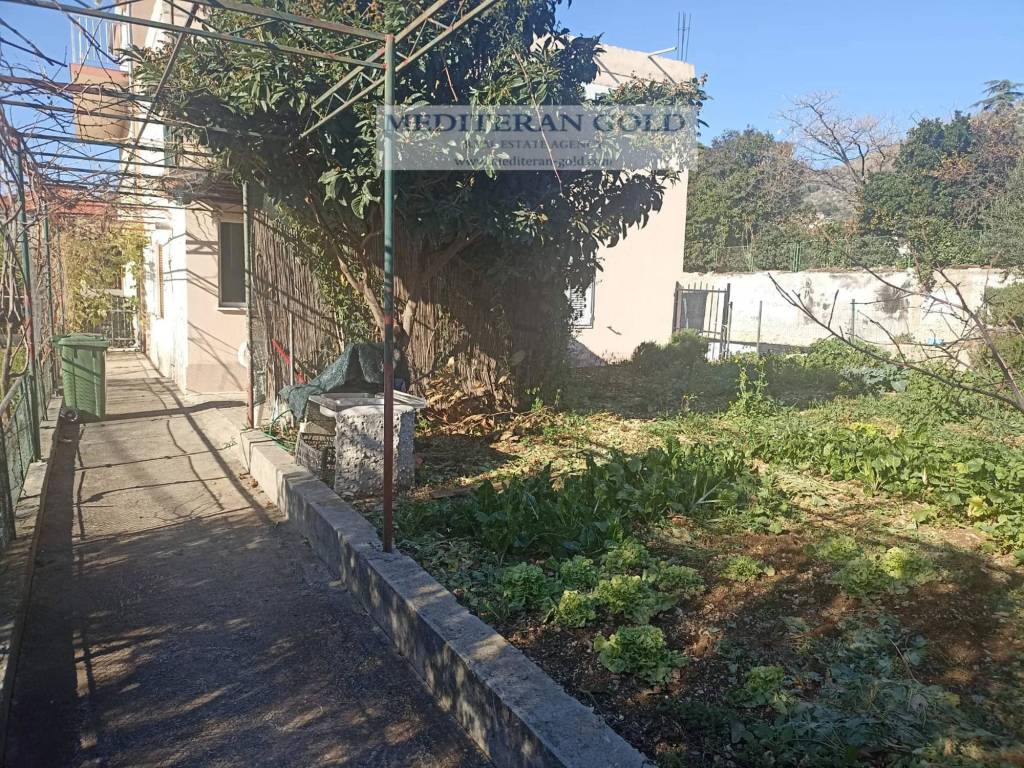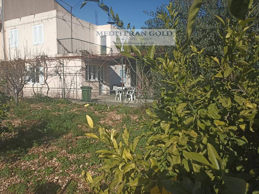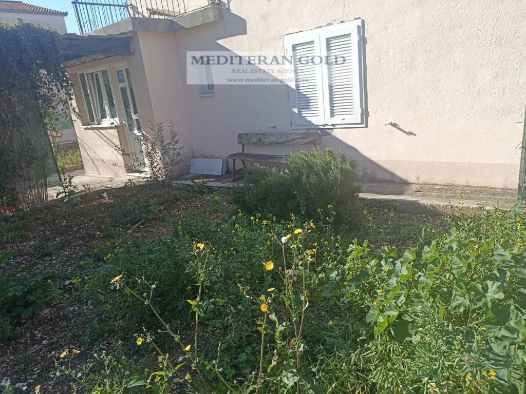 Trogir, Seget Donji, a semi-detached house on two floors is for sale. It consists of a ground floor: kitchen, living room, dining room, bathroom and hallway, in a total area of ​​54.77 m2, on the first floor there are three rooms, a hall, internal staircase, in a total of ​​50.83 m2, with the associated ancillary parts: on the first floor: a loggia - with of ​​9.87 m2, a flat roof wit of ​​62.46 m2, and auxiliary buildings: 2 storage rooms and a summer kitchen of ​​47.68 m2 , in a total of 178m2 and a garden of 451.00 m2. Distance from the sea is 350m. Ideal for living or as an investment.
