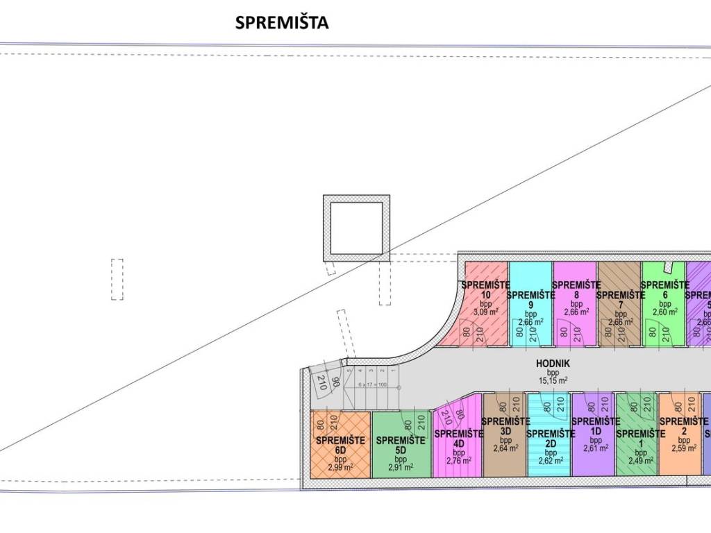 It has a storage room of 2.76 m2.