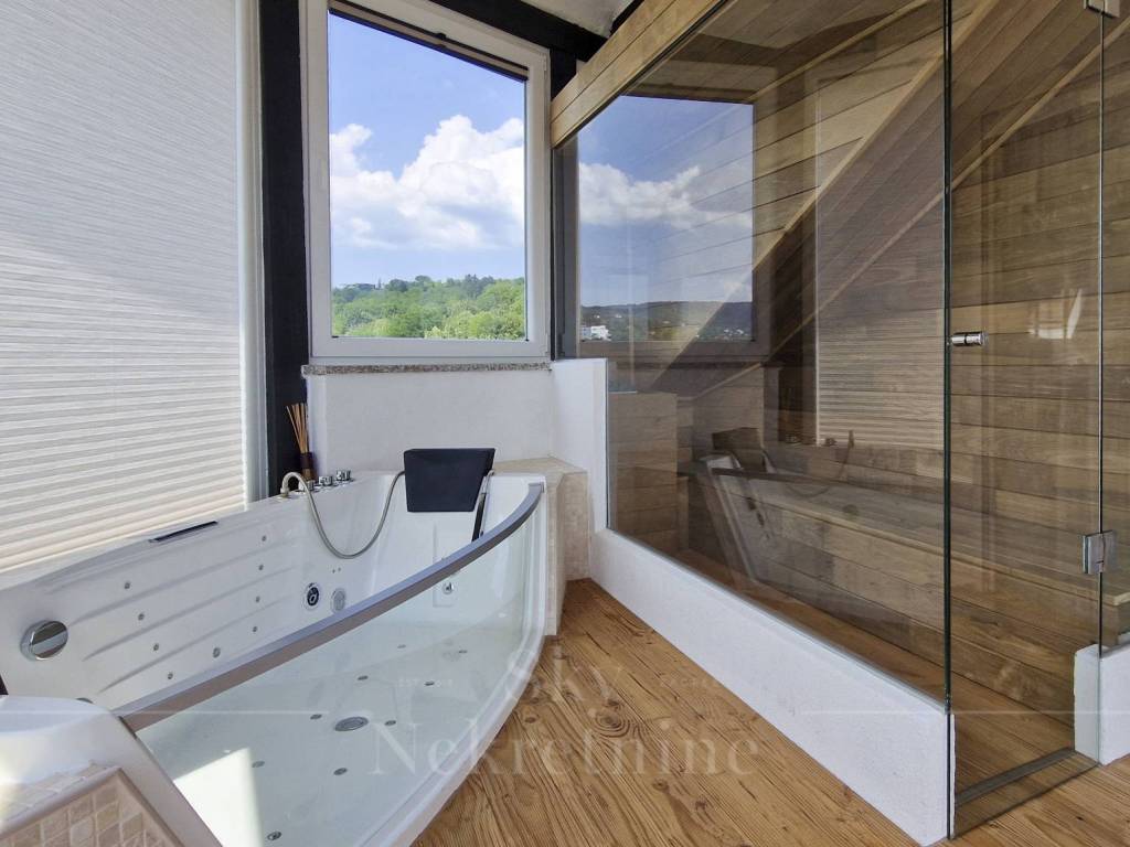 It is equipped with high-quality materials, Miele appliances, a sauna, a jacuzzi, and a smart home system.