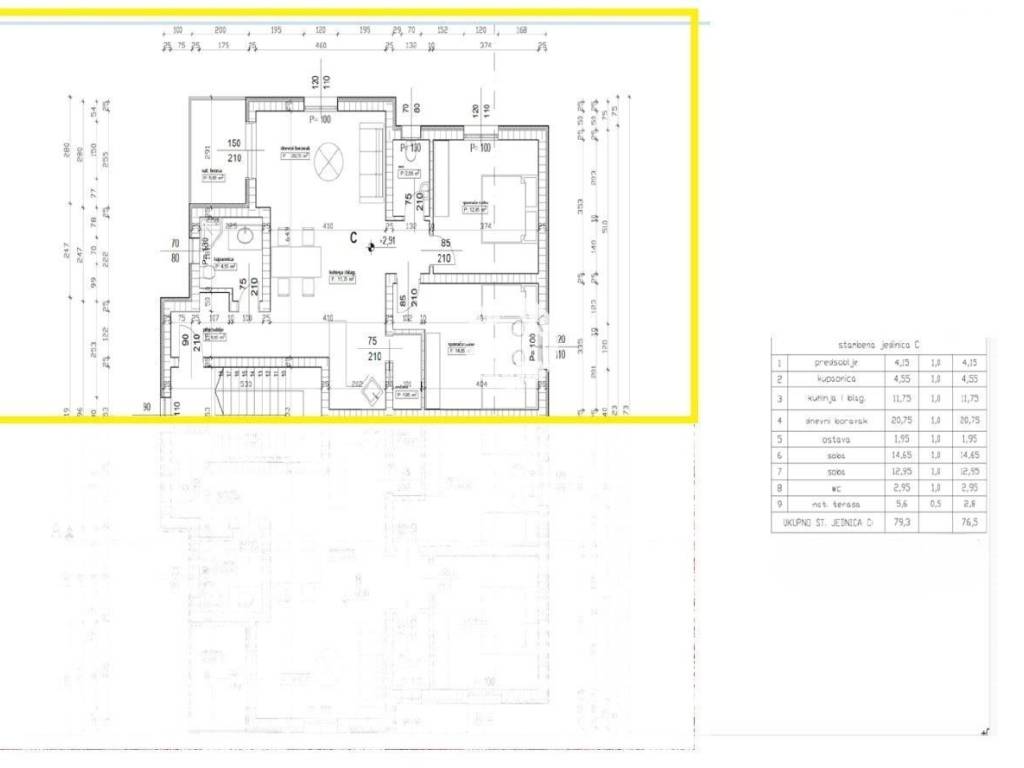 Istria, Poreč – surroundingsIn a quiet settlement at a beautiful location, a modern residential building with a total of five apartments is under construction.Apartment C, with a total area of 76.50 m², is located on the first floor and consists of an entrance hall, a spacious living room with kitchen and dining area in an open-space concept, two bedrooms, a guest toilet, a storage room, a bathroom, and a terrace.Underfloor heating combined with fan coil units will provide heating and cooling via a heat pump, ensuring a pleasant temperature throughout the year.The apartment includes a parking space in front of the building, with the possibility to purchase an additional parking space.The apartment will be ready for occupancy by the end of 2025.The building is located in a quiet area near Poreč, close to all necessary amenities, and the sea is only 5.5 km away.An excellent opportunity for solving your housing needs or as an investment.