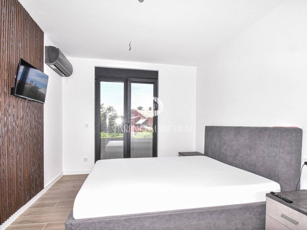 Istria, Poreč – Modern ground-floor apartment only 400 m from the seaFor sale is a modern ground-floor apartment with a total area of 88 m², located just 400 metres from the beautiful beaches of Poreč.The apartment consists of a spacious living room, kitchen and dining area with a large sliding glass wall leading to a sunny terrace and landscaped courtyard.It also features a hallway, bathroom, and two bedrooms, one of which includes a walk-in wardrobe and private bathroom.Equipped with electric underfloor heating and air conditioning in all rooms, the apartment stands out for its custom-made Italian furniture, high-quality tiles, and windows with electric shutters.A large storage room in the basement and two parking spaces in front of the building are included in the price.Thanks to its exceptional location close to the sea and all amenities, this property is an excellent choice for comfortable living or as a secure investment for the future.