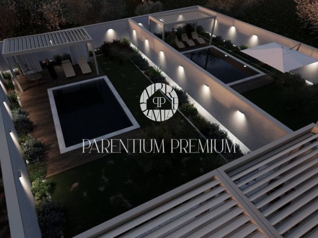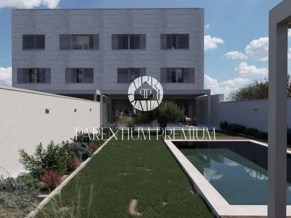 Istria, Poreč areaA modern ground floor apartment with a swimming pool and a garden is for sale, just 2km from the sea.The apartment has a total area of 87.46 m2 and consists of an entrance hall, bathroom, two bedrooms, one of which has its own bathroom, kitchen with dining room and living room in an open space concept with access to a covered terrace and a 139m2 garden with a sunbathing area and a 15m2 swimming pool.The apartment is equipped with top-quality ceramics, the rooms have parquet flooring, anthracite three-layer joinery with a glitter effect, electric shutters, video surveillance, security doors with a code entry, and interior doors with hidden hinges and magnetic locks.The apartment will have electric underfloor heating and top-quality air conditioning.In front of the building there will be 2 owned parking spaces (6.25m2).Planned completion at the end of 2025.This apartment offers the perfect combination of comfort and practicality.Everything you need for life is within walking distance.Due to its exceptional location, this apartment is an ideal solution for housing or as an investment for tourism purposes.