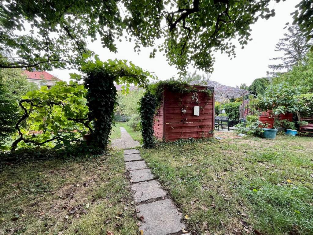 We are selling an apartment on the ground floor of a two-apartment family house. The apartment covers approximately 80 m2 and consists of one bedroom, a living room, a separate kitchen, a bathroom with a toilet, and a dining room which can be converted into a second bedroom if needed. The apartment also includes a garage and half of the yard, which is truly a natural oasis in the middle of the city!