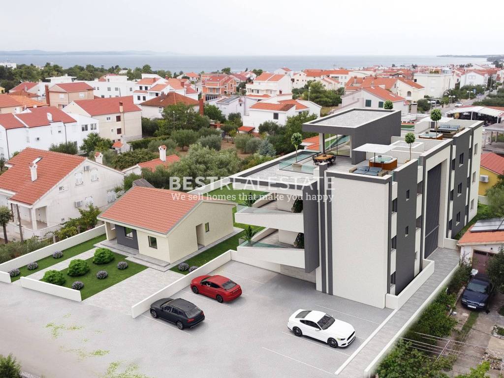 U mirnoj i tihoj ulici, svega 700 metara od mora, smjestio se novoizgrađeni objekt s ukupno 7 stanova, idealan za obiteljsku ili turističku namjenu.