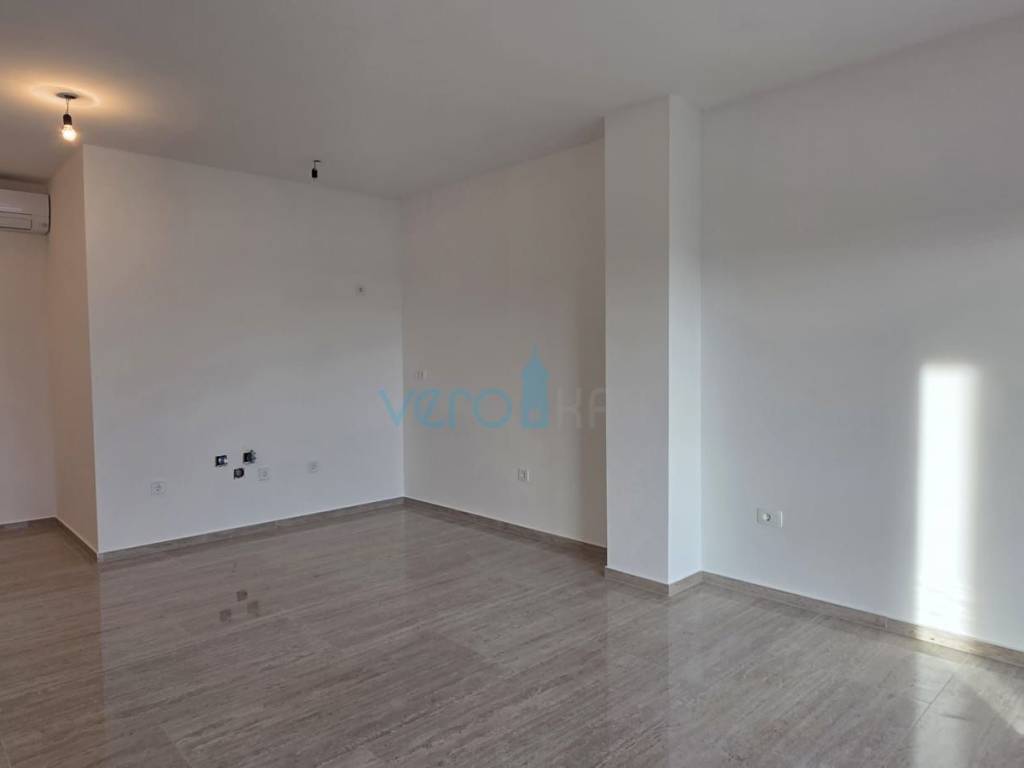 The apartment with a total area of 91.81 m2 is located on the first floor of a residential building with 8 apartments. It consists of a hallway, two bedrooms, one of which has access to a covered terrace with a view of 12.20 m2, a bathroom, a toilet, and a large open space that combines the kitchen, dining room, and living room with access to a covered terrace with a view of 12.85 m2. The apartment includes two parking spaces in the landscaped yard.