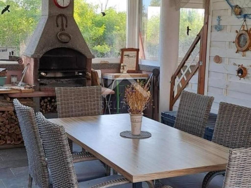 Comfort is provided by a large covered terrace, protected from rain and wind by large windows. There is a fireplace on the terrace.