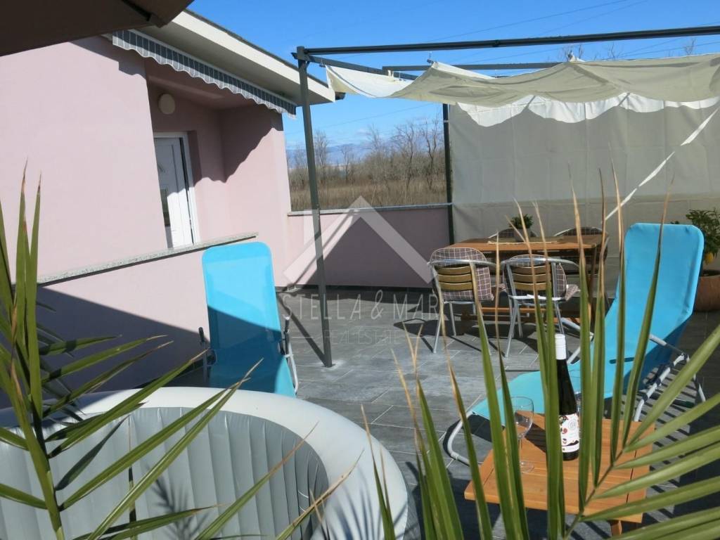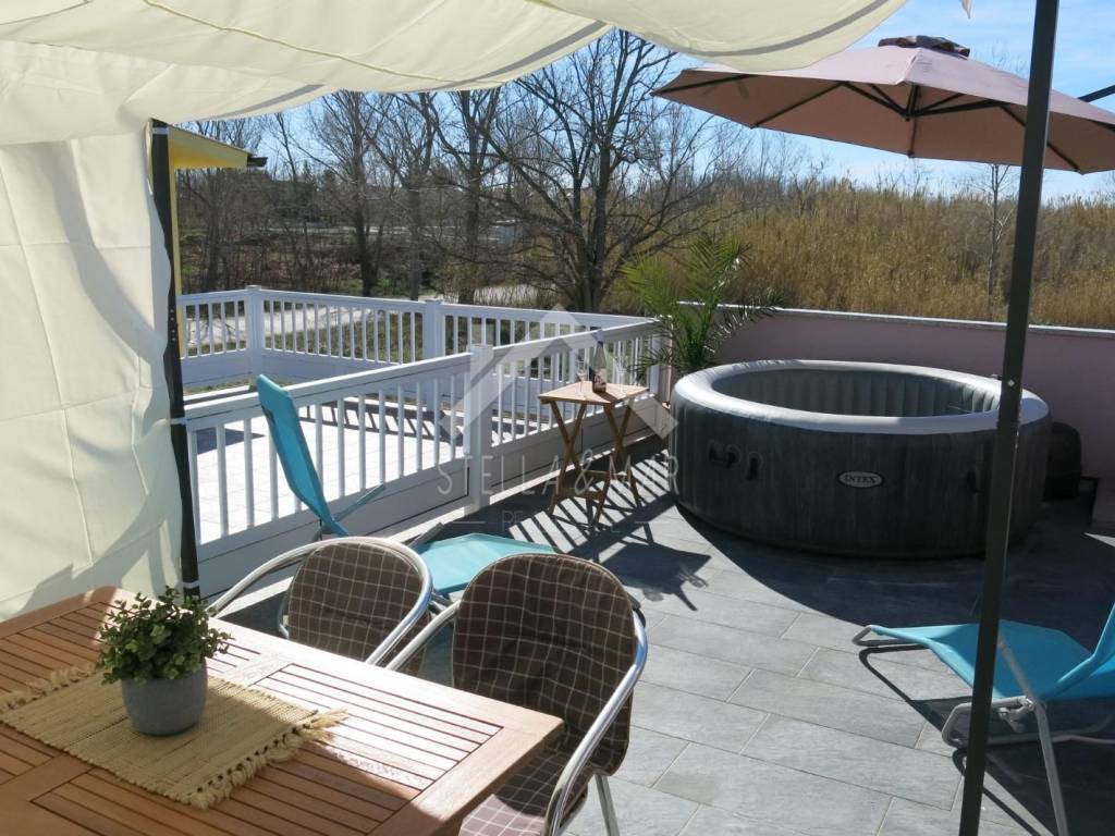 1st floor - APARTMENT 40 m2 - large terrace 30 m2, bedroom 1, bedroom 2 (this bedroom can be made into a living room) and a separate kitchen and bathroom with toilet. Fully furnished, has air conditioning, there is a smart TV in each room, there is also a washing machine in the kitchen. On the terrace there is a dining table protected from the sun by an awning, on the terrace there is a jacuzzi. From the terrace there is a nice view of the Velebit mountain range and the surrounding nature.