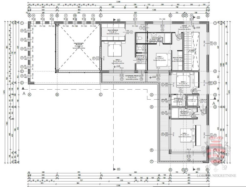 covered terrace ( 27 . 57 * 0 . 5 ) 13 . 79 m2 Bedroom 1 22 . 04 m2 Bathroom 1 4 . 48 m2 Bedroom 2 10 . 44 m2 Bathroom 2 2 . 85 m2 lift 1 . 96 m2 Bedroom 3 17 . 86 m2 Bathroom 3 6 . 21 m2 Bedroom 4 21 . 46 m2 Bathroom 4 4 . 84 m2 walk in closet 6 . 81 m2 Hallway 18 . 38 m2