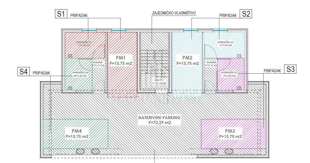 A modern new building in Diklo consisting of 4 residential units, located in a prime location, surrounded by greenery and 650 meters from the sea. The property is characterized by a high standard of construction and equipment: aluminum windows with mosquito nets and sunshades, high-quality floor coverings (tiles and parquet), underfloor heating, color video intercom system, central button for turning off the lights, charging station for electric vehicles, etc. The apartment marked S1 is located on the ground floor and on the 1st floor of the building. On the ground floor of the apartment there is a hallway, toilet, bedroom 1, bathroom 1, kitchen, dining room and living room and a loggia. On the first floor there is a living room, hallway, bathroom 2, technical room, bedroom 2, bedroom 3 and a loggia. The apartment has a storage room in the basement, one garage parking space, one outdoor parking space and a garden. Beautiful pebble beaches, well-maintained swimming areas and clear sea, along with modern urban villas and apartments that offer high-quality accommodation according to the highest world standards, make Diklo an almost elite part of Zadar's tourist offer.
