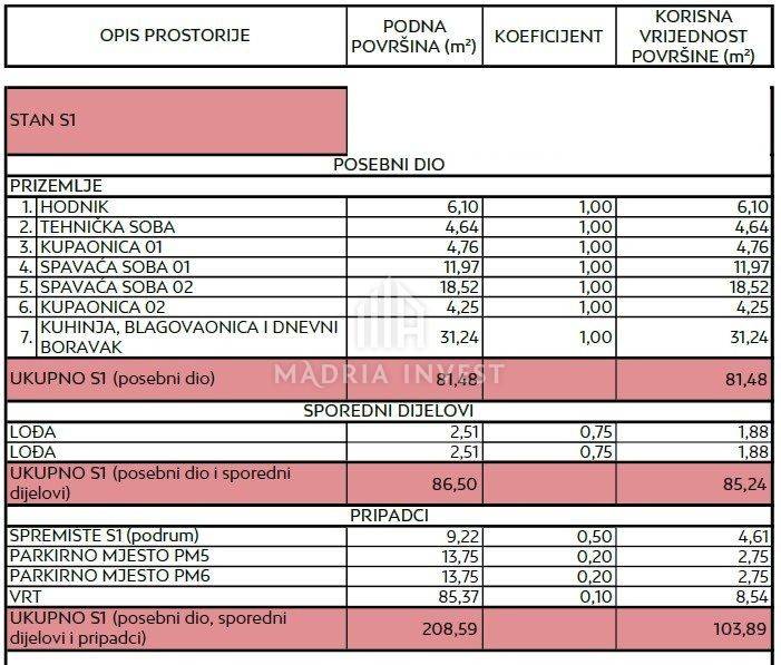 A modern new building in Diklo consisting of 4 residential units, located in a prime location, surrounded by greenery and 650 meters from the sea. The property is characterized by a high standard of construction and equipment: aluminum windows with mosquito nets and sunshades, high-quality floor coverings (tiles and parquet), underfloor heating, color video intercom system, central button for turning off the lights, charging station for electric vehicles, etc. The apartment marked S1 is located on the ground floor and on the 1st floor of the building. On the ground floor of the apartment there is a hallway, toilet, bedroom 1, bathroom 1, kitchen, dining room and living room and a loggia. On the first floor there is a living room, hallway, bathroom 2, technical room, bedroom 2, bedroom 3 and a loggia. The apartment has a storage room in the basement, one garage parking space, one outdoor parking space and a garden. Beautiful pebble beaches, well-maintained swimming areas and clear sea, along with modern urban villas and apartments that offer high-quality accommodation according to the highest world standards, make Diklo an almost elite part of Zadar's tourist offer.