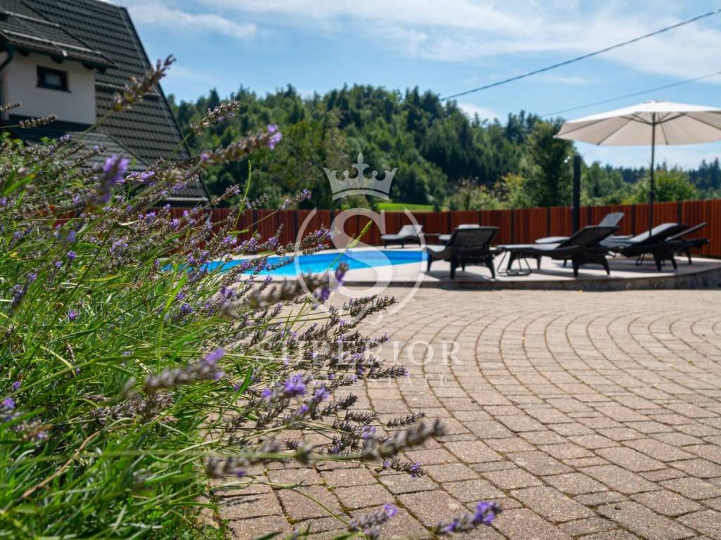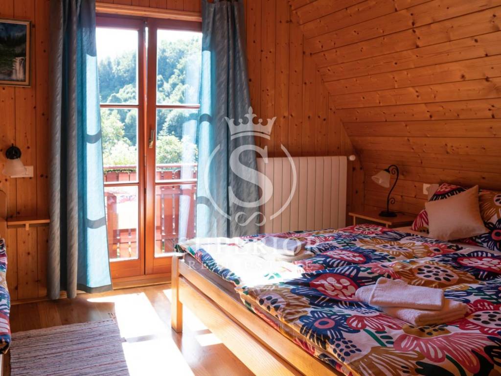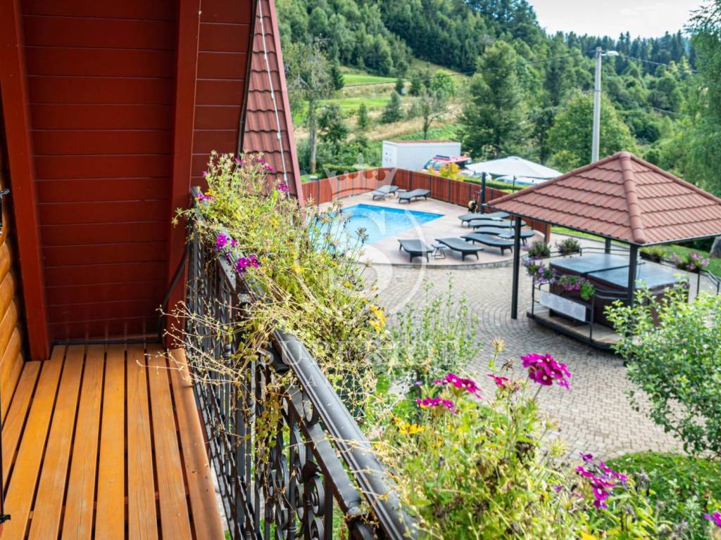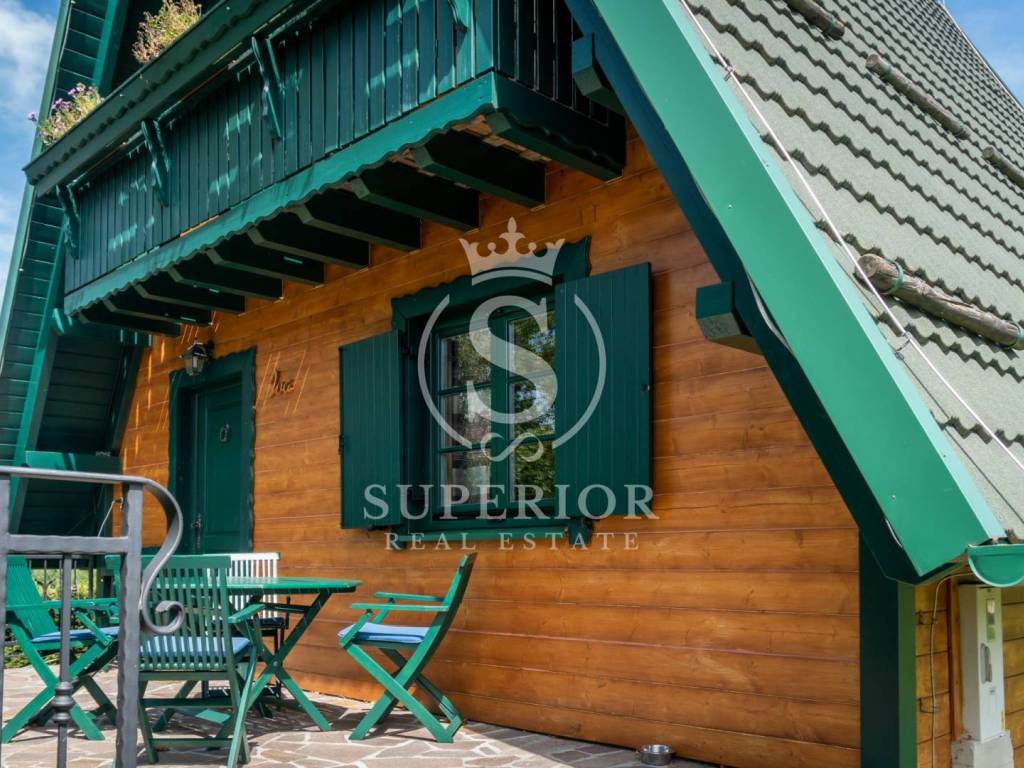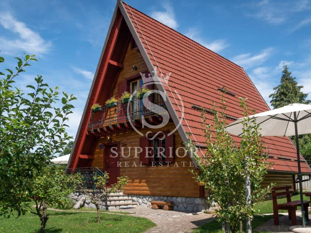 This unique investment opportunity includes four luxury wooden houses, an outdoor swimming pool with jacuzzi, an additional wellness building with sauna and tavern, and a fully operational tourist business.