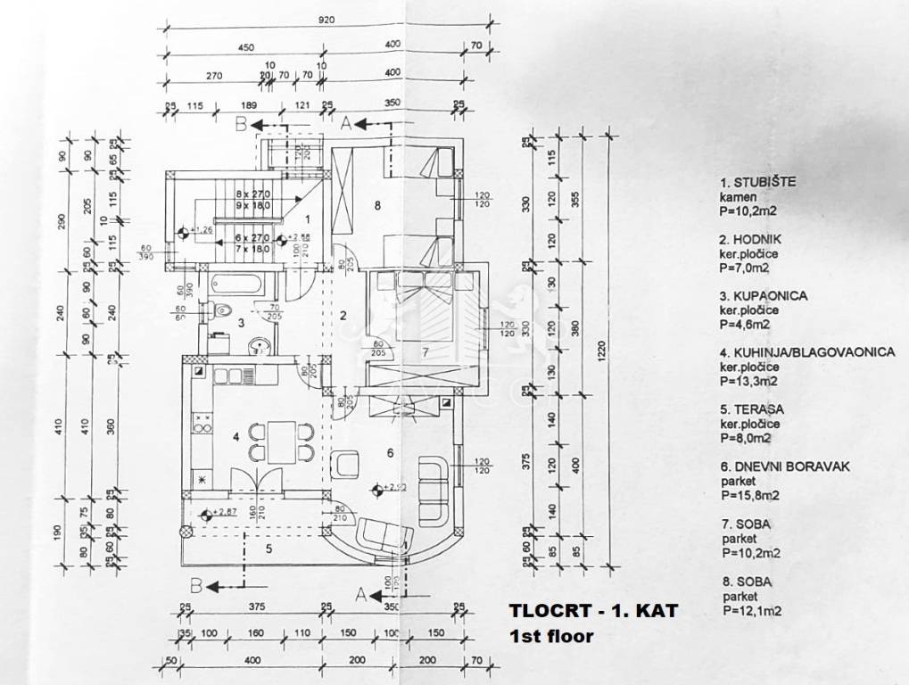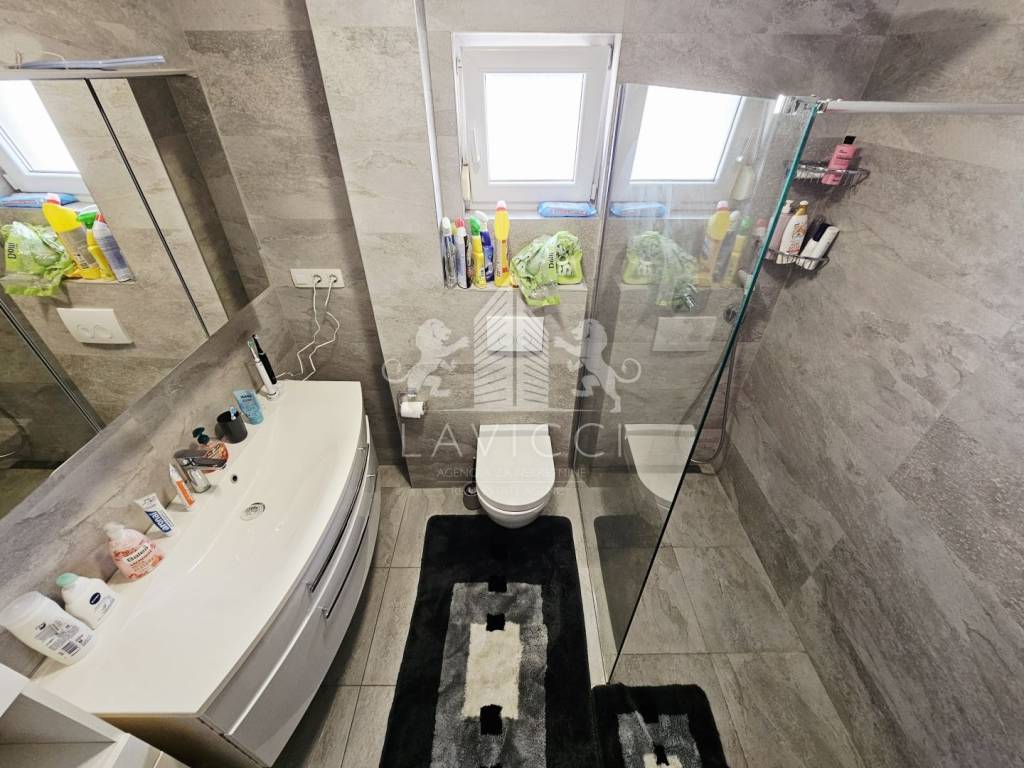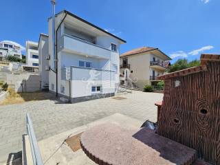 It was built with quality materials, PVC joinery with ALU shutters was installed, and a 10 cm polystyrene facade contributes to energy efficiency. The floors are covered with ceramic tiles in the living areas and bathrooms, while the bedrooms have laminate flooring. Heating and cooling are provided by air conditioning in all apartments, and a wood-burning stove has also been installed.
