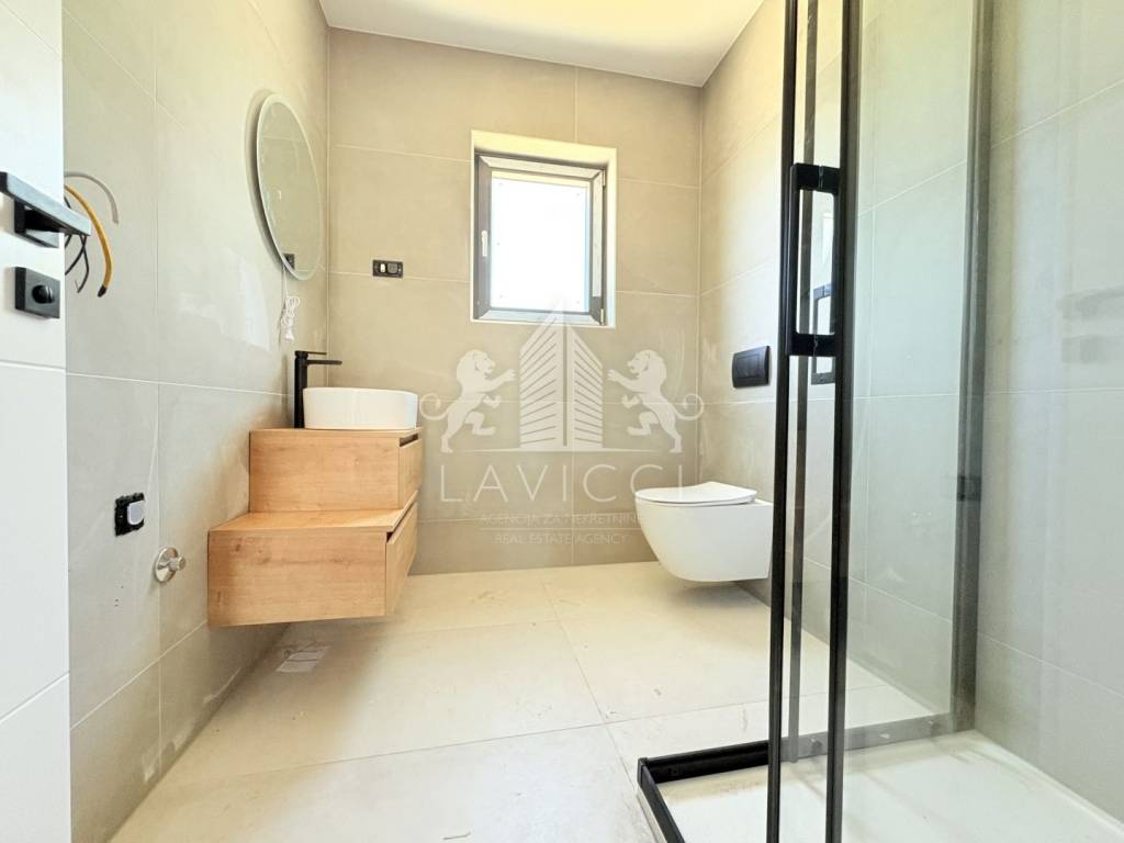 The building is built of high-quality brick thermal blocks, with a facade covered with 10 cm thick polystyrene, which ensures excellent thermal insulation. PVC joinery with aluminum shutters and mosquito nets is installed, and heating and cooling is provided by air conditioning in the living room and bedrooms. Additional comfort is provided by underfloor heating, while the combination of ceramic tiles and laminate ensures an elegant and functional interior.