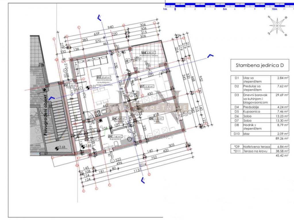 The roof terrace can accommodate a jacuzzi, a summer kitchen, a sunbathing area, a dining table, and much more (plumbing and electrical connections are in place).