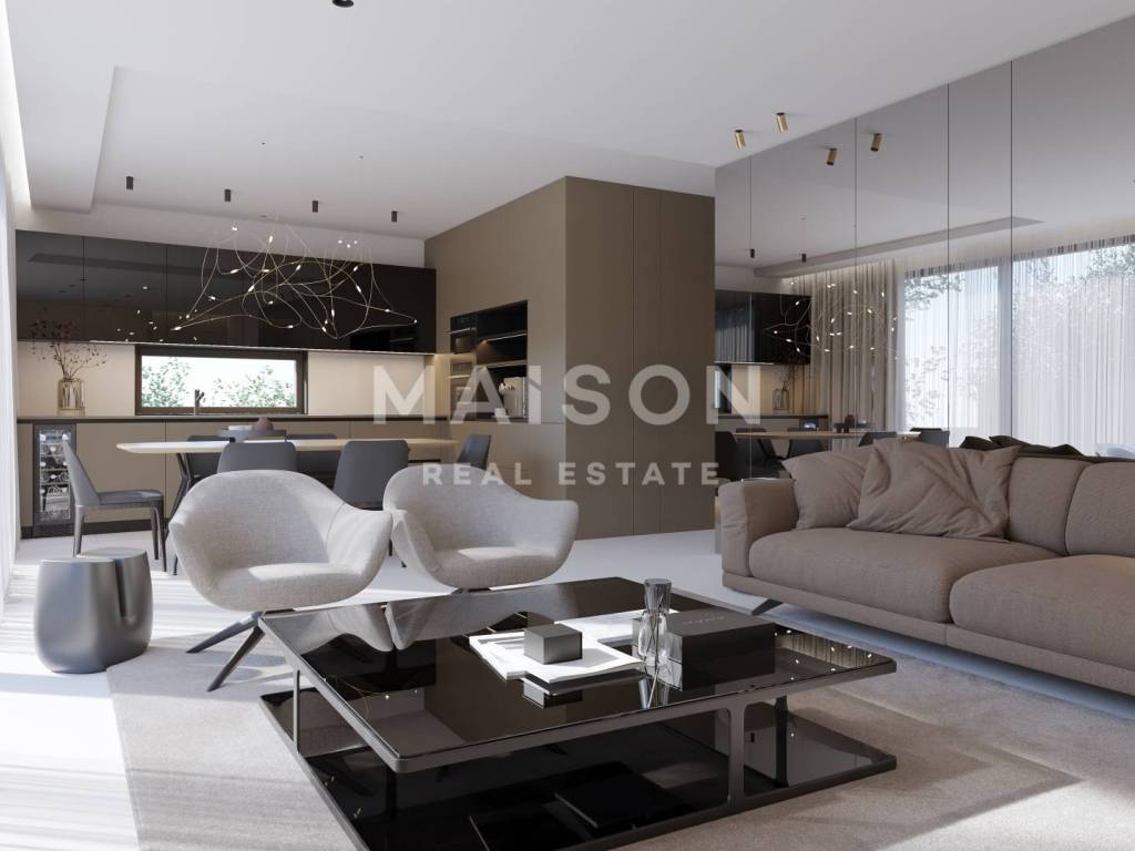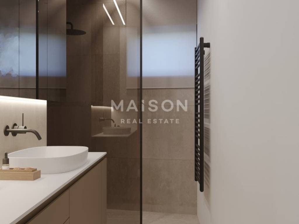 It consists of two bedrooms, a storage room, a bathroom, and a spacious kitchen that connects to the dining area and living room, from which you can access your terrace.