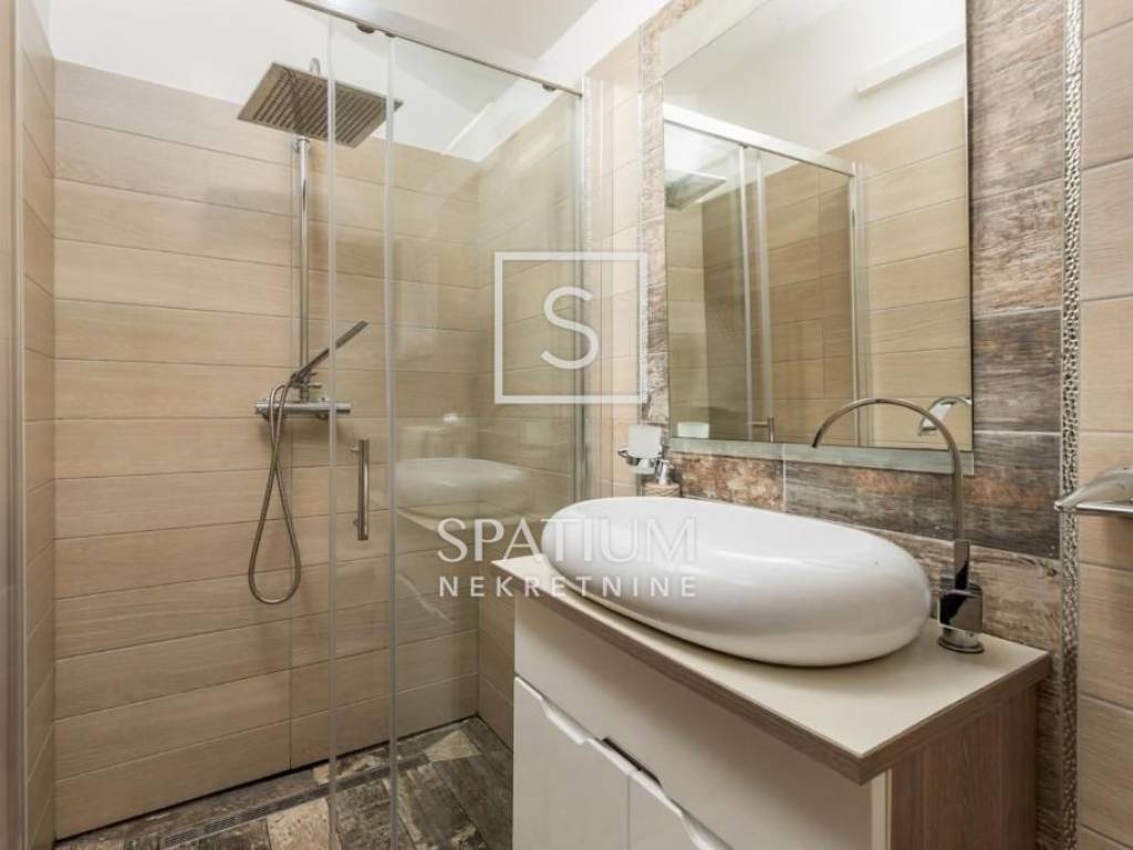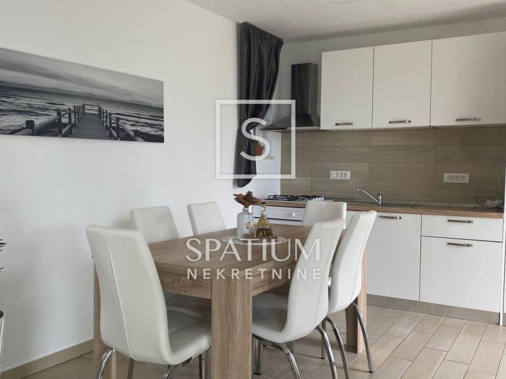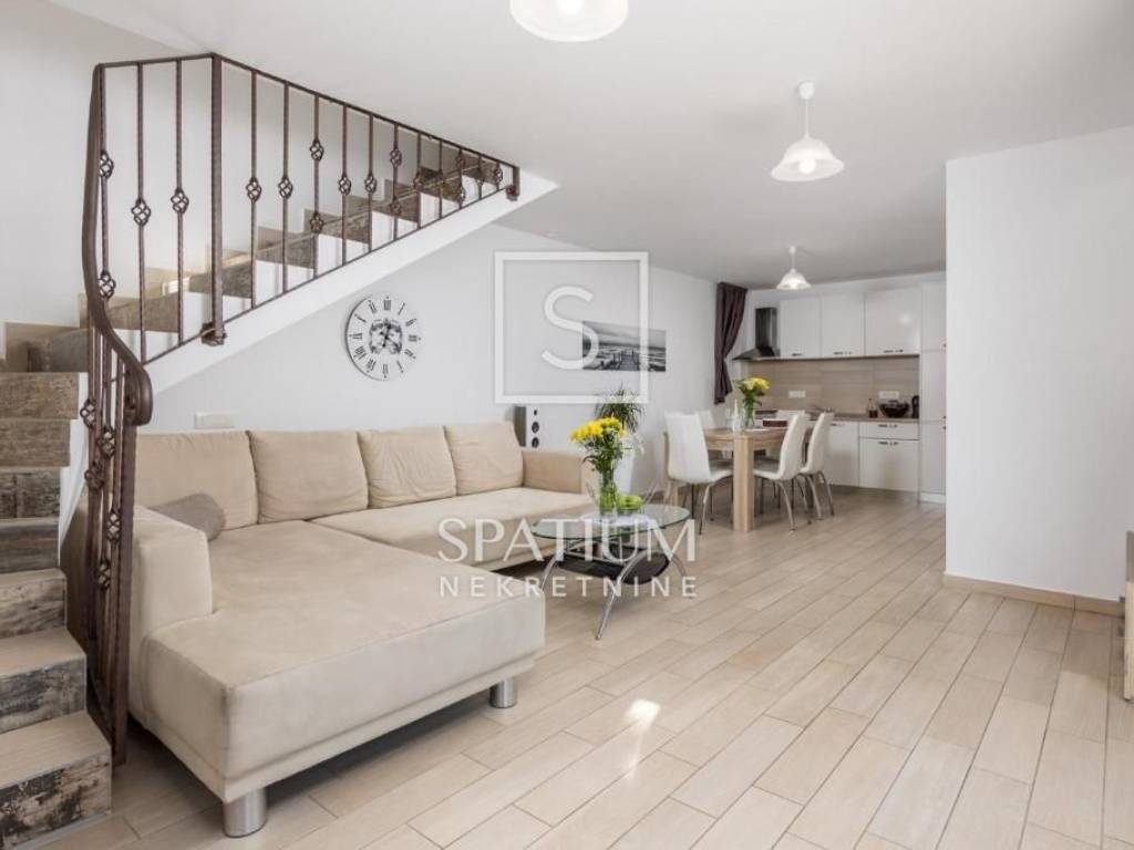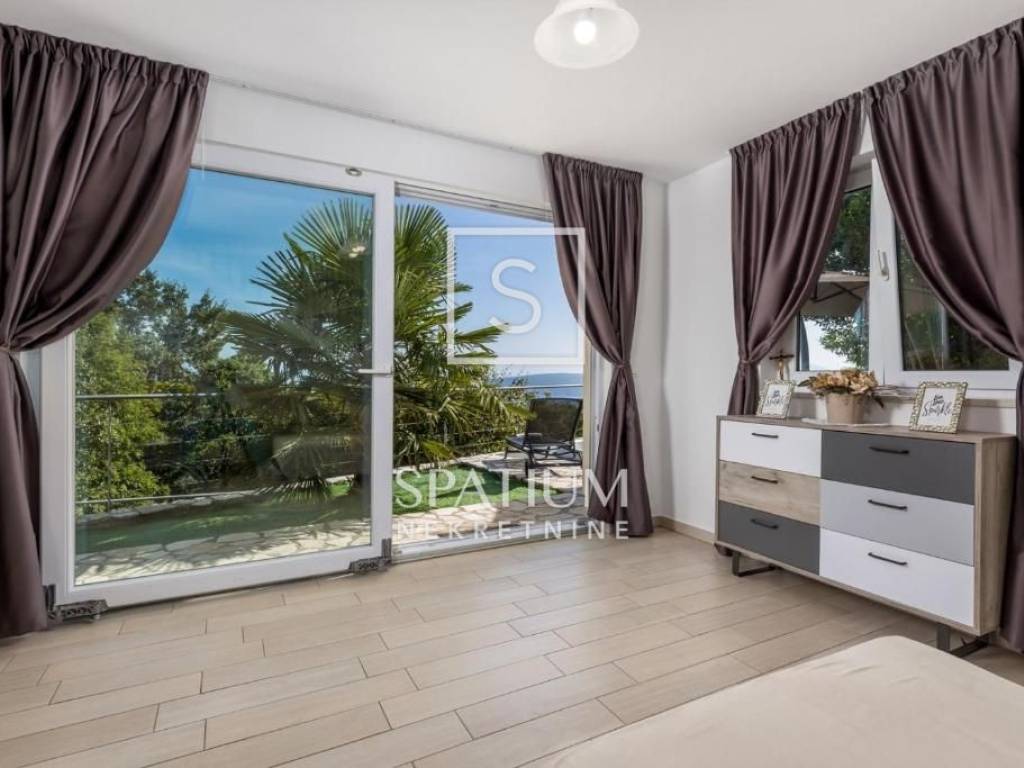 MOŠĆENIČKA DRAGA, SVETA JELENA, we offer a beautifully decorated detached house with a sea view. It consists of a ground floor and an upper floor, a living area of 90m2, with the possibility of an extension. Ground floor: living room with kitchen and dining room and guest toilet. First floor: two bedrooms, each with access to a balcony and a bathroom. Three air conditioners for heating/cooling, new roof, thermal facade, PVC joinery The house is fully decorated and equipped. Within the neatly maintained garden, there is a barbecue, outdoor shower and jacuzzi. The property is in a quiet location, in a natural environment, with a panoramic sea view. An excellent investment in the tourist industry.