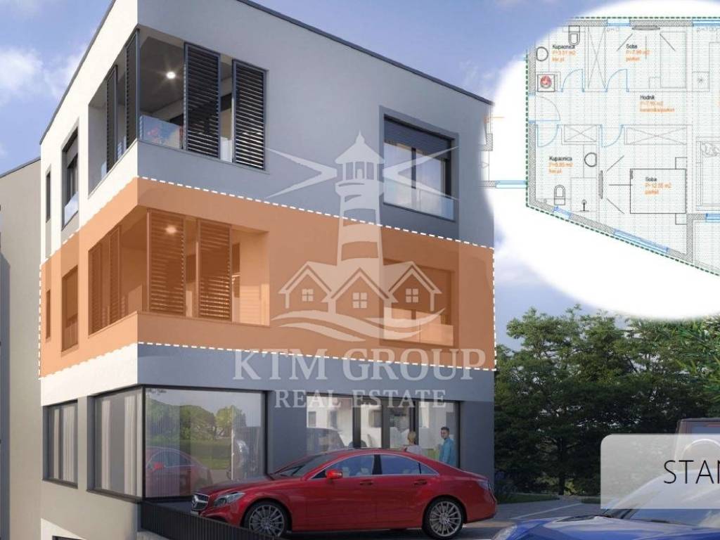 Zadar, Belafuža, modern new building project with 5 residential units and commercial space..The building is located in a quiet environment, yet close to all necessary amenities – schools, kindergartens, shops, public transport and recreational areas. The building is equipped with an elevator that connects all floors from the garage to the top floor, and the highest quality materials are used in the construction in accordance with the highest standards of modern architecture and energy efficiency.