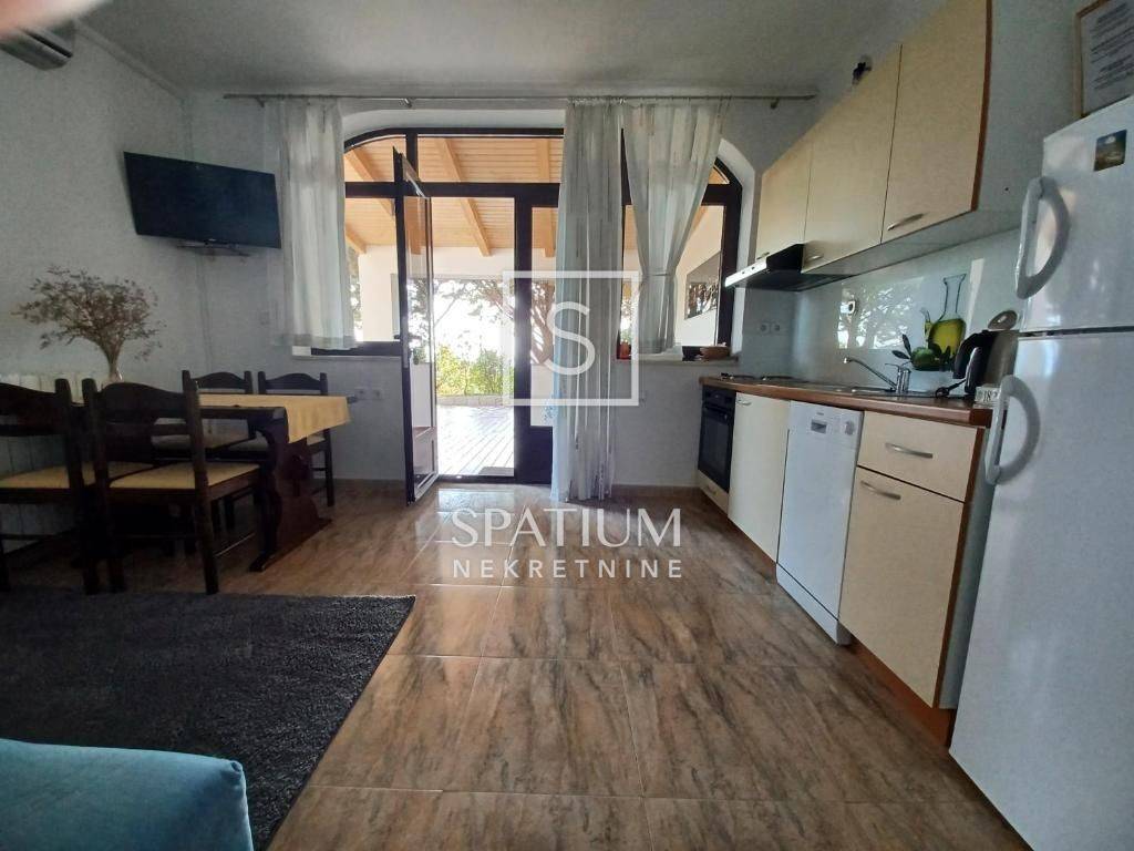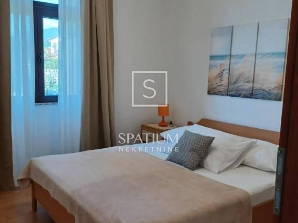 NOVI VINODOLSKI, KLENOVICA, we offer an apartment house with a swimming pool. A detached house with a large garden, close to the sea. It consists of a ground floor and two floors. A total of eight apartments, one with two bedrooms, while the others have one separate bedroom. Each with a separate entrance, terrace and sea view. All apartments are furnished and fully equipped. Central heating, air conditioning for heating/cooling. Inside the spacious and fenced garden there are two garages, a swimming pool with a sunbathing area, two stone barbecues, a space for socializing, gardens with Mediterranean plants. Next to the house there is a neat building plot of 600m2. Suitable for a family business, year-round living and tourism.