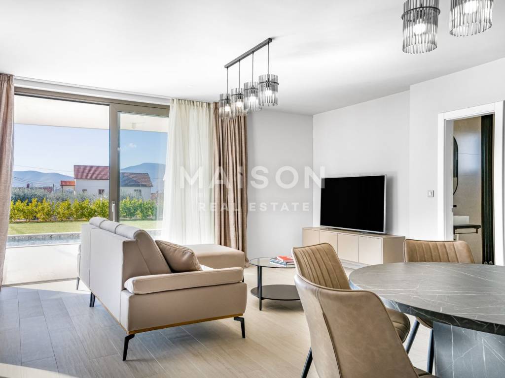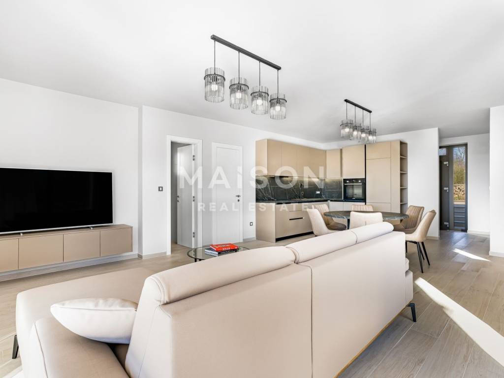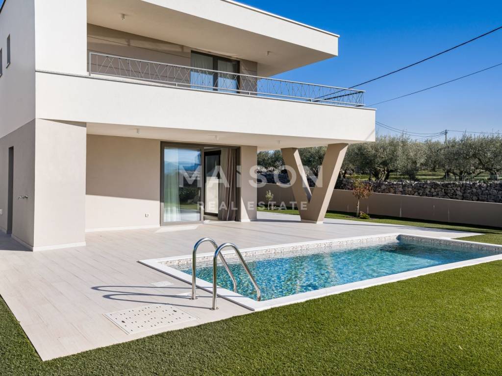 In a quiet and well-maintained setting, just a few minutes' drive from the town of Krk, this contemporary villa blends elegance with comfort. Spanning a total of 175 m² across two levels, this detached property offers a refined architectural concept and a harmonious combination of modern design, functionality, and high-end quality.