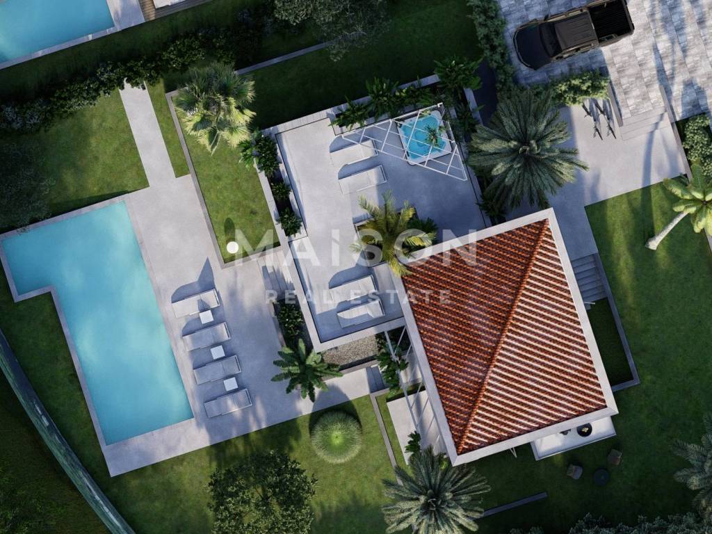 The villa is part of a gated, thoughtfully designed resort consisting of five villas, offering exclusive amenities for owners and their guests: tennis and basketball courts, mini golf, open-air gym, children’s playground, and a bocce court.