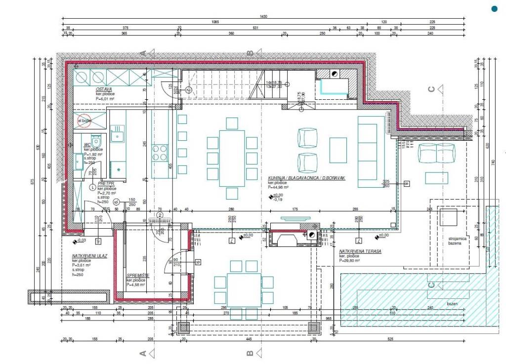 In the garden of 470 m2 there are two parking spaces. Excellent quality of construction and equipment: the house has underfloor heating, PVC joinery, air conditioning, security doors, video surveillance, and the pool has an electrolysis system. This detached house is completely surrounded by greenery and nature, and is located only 500 m from the sea. Precisely because of its quiet location near the sea and excellent equipment, the house is perfect for rent.