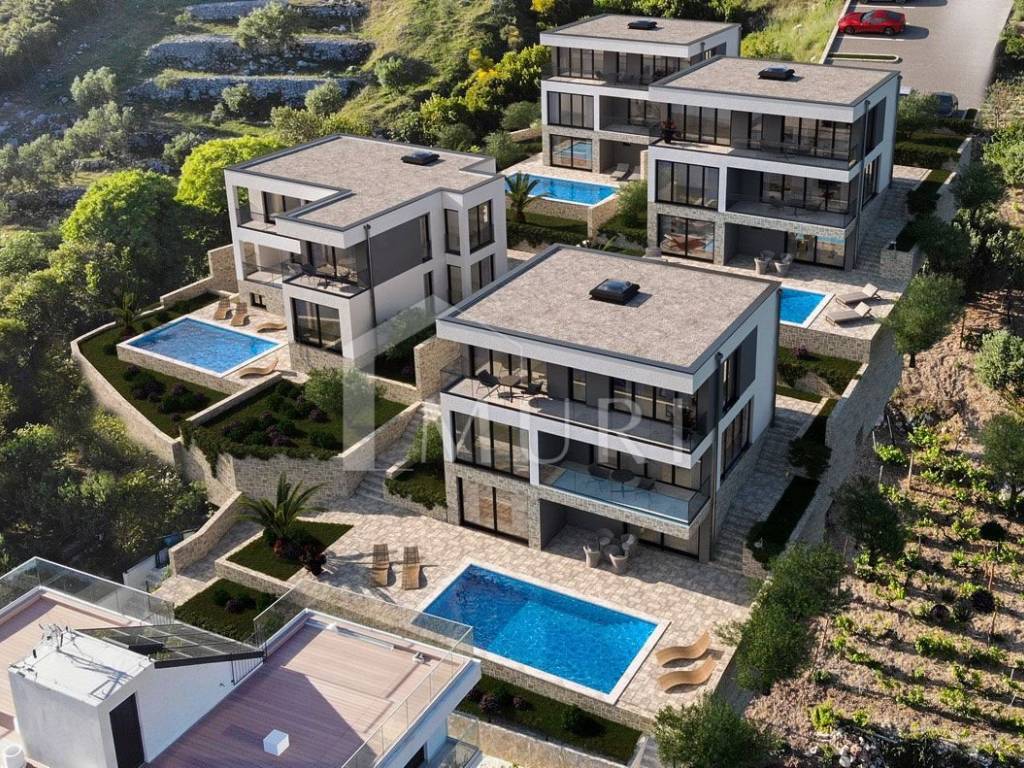 Four luxurious villas for sale in a prime seafront location in Kučište, offering panoramic views of Korčula, the surrounding islands, and the endless blue of the Adriatic – a project that sets new standards for modern Mediterranean living.