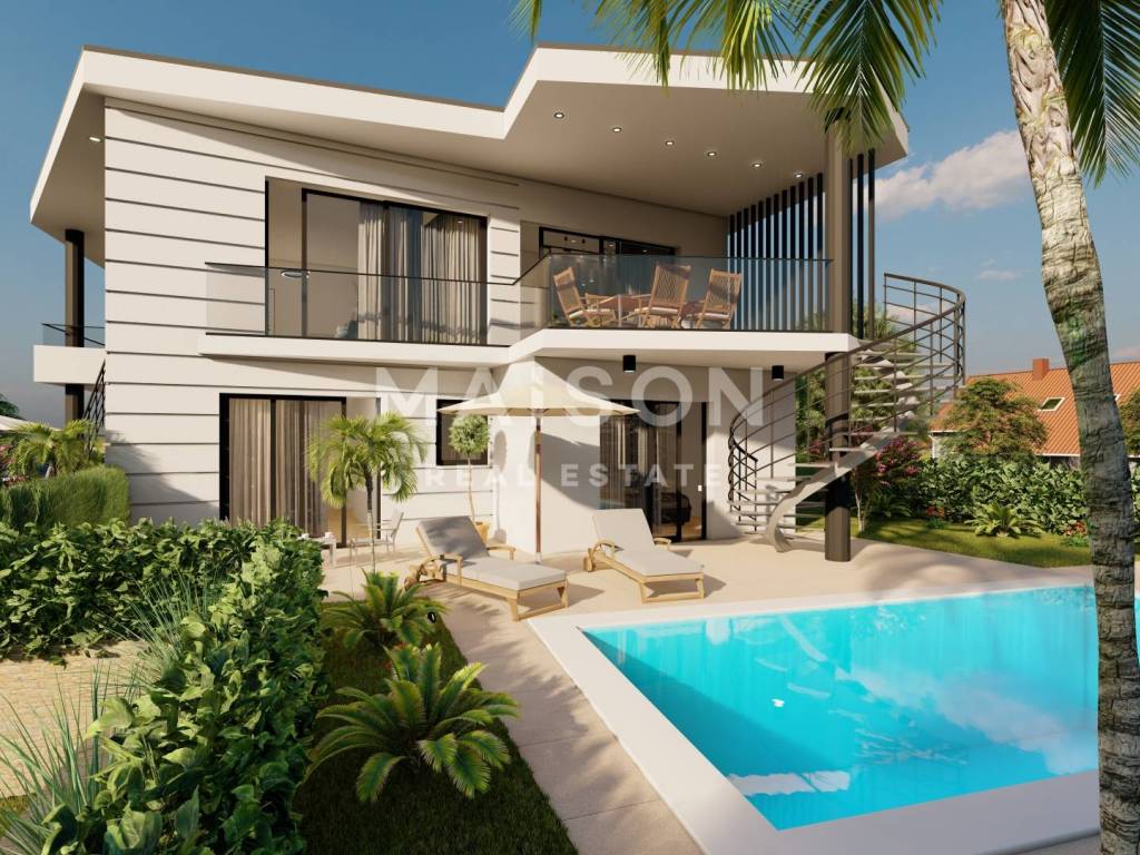 Only a hundred metres from the sea, in a quiet part of Malinska, lies this modernly designed semi-detached villa with a swimming pool, offering a blend of luxury, functionality and contemporary architecture.