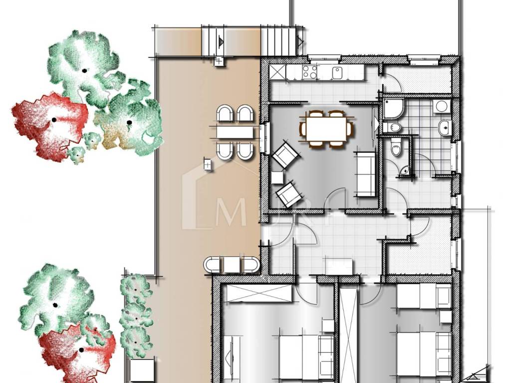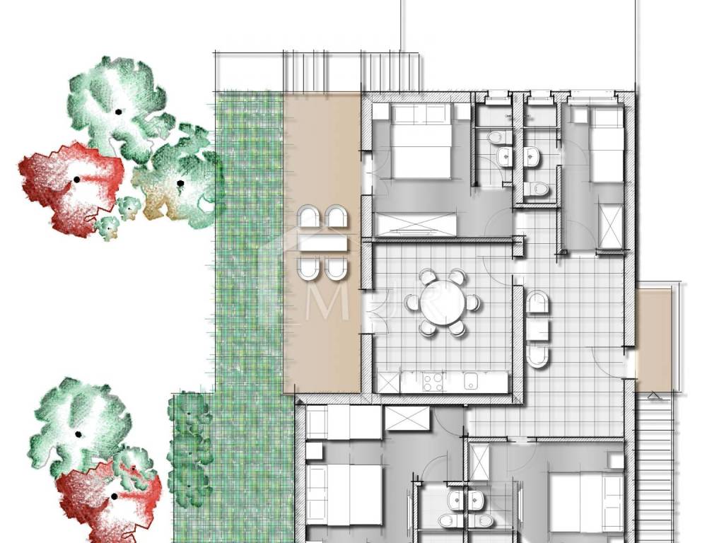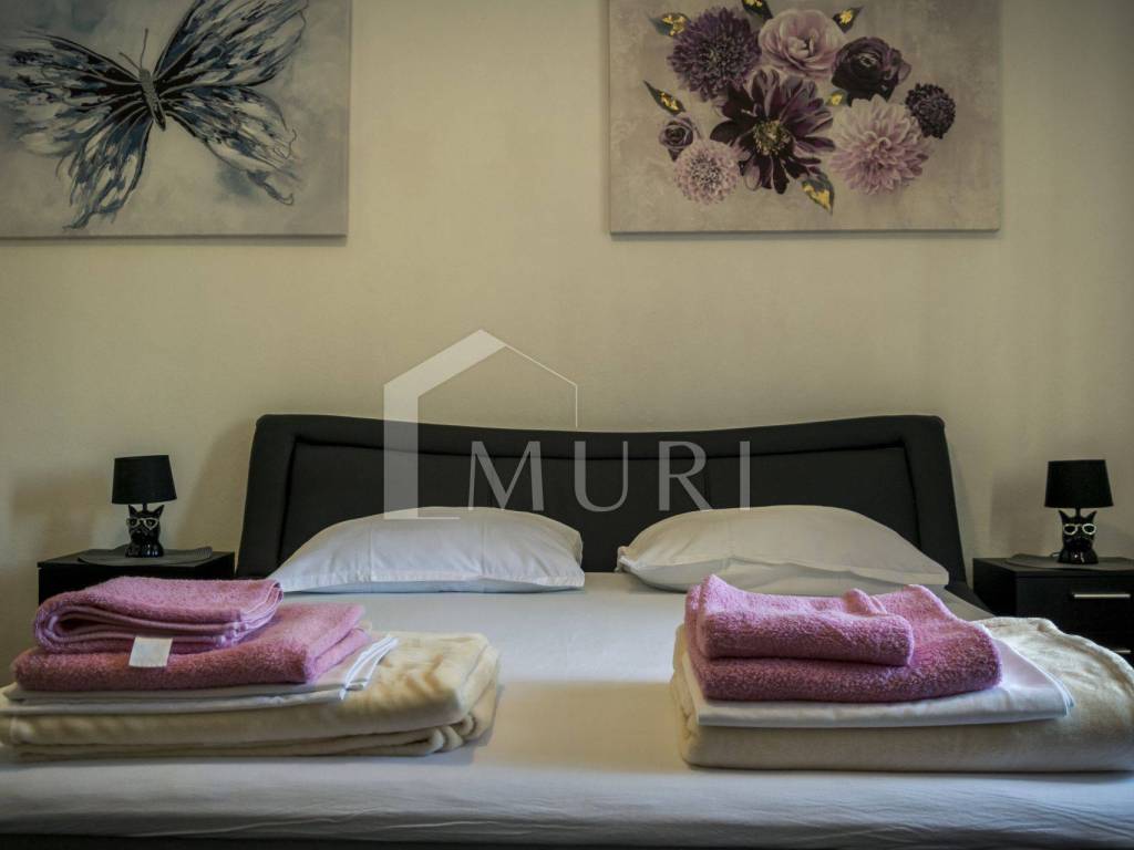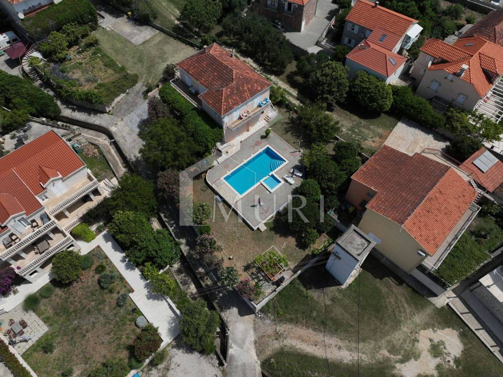 The upper floor features four bedrooms, each with its own en-suite bathroom, three of which have access to a balcony with a beautiful view of the sea and nearby islands. There is also an additional kitchen with dining space and access to a large balcony, making the property perfect for a large family or for rental as a whole or in separate units.