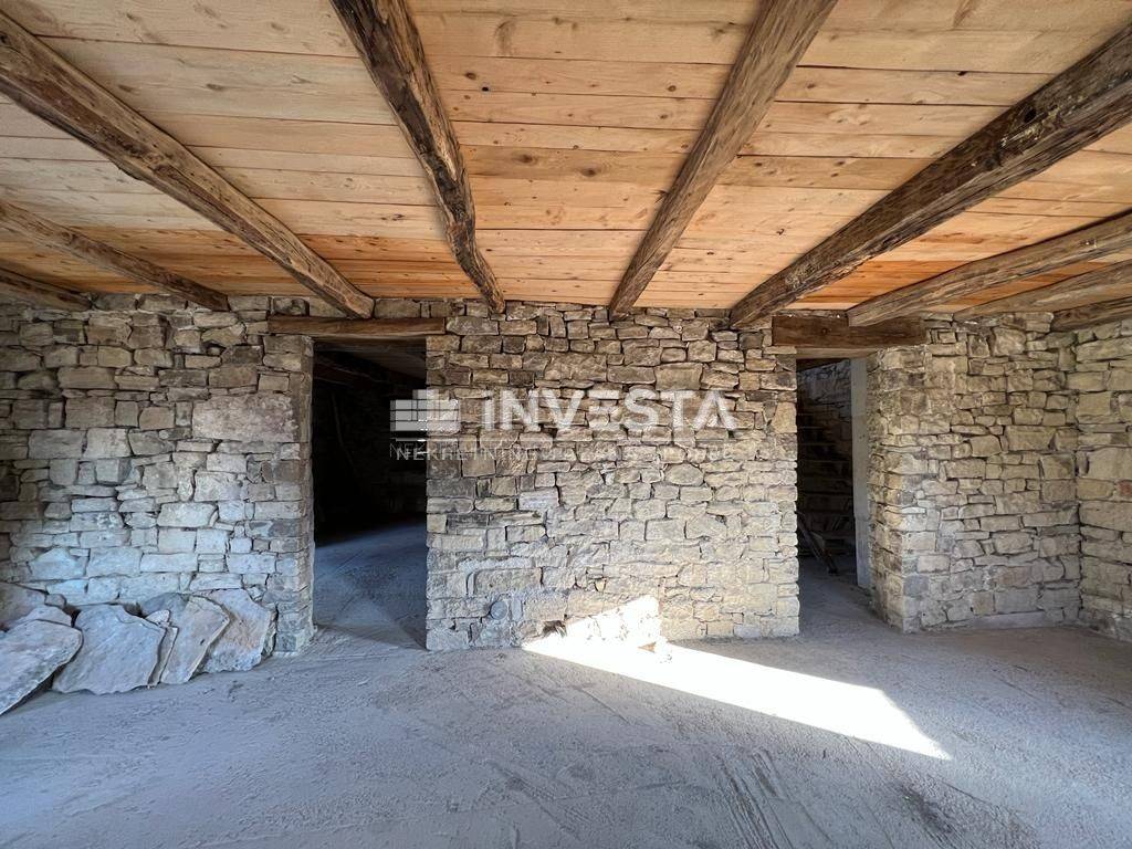 For sale is a unique Istrian stone house located near Motovun with a stunning view of the Motovun Hills and the surrounding nature. The house is in a "rough construction" phase, with a total area of 240 m², spread across three levels: ground floor, first floor, and an attic. Electricity and water are available nearby. Given the size of the plot, there is potential for a swimming pool.