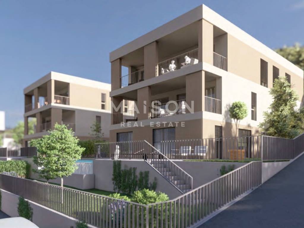 In the peaceful, greenery-surrounded neighborhood of Glavani in Kostrena lies Apartment S1-D – part of an exclusive project that combines contemporary architecture, top-quality construction, and family-oriented comfort. The spacious 163.89 m² interior offers a perfect blend of functionality and elegance, while large glass surfaces provide views of the Kvarner Bay and the islands.