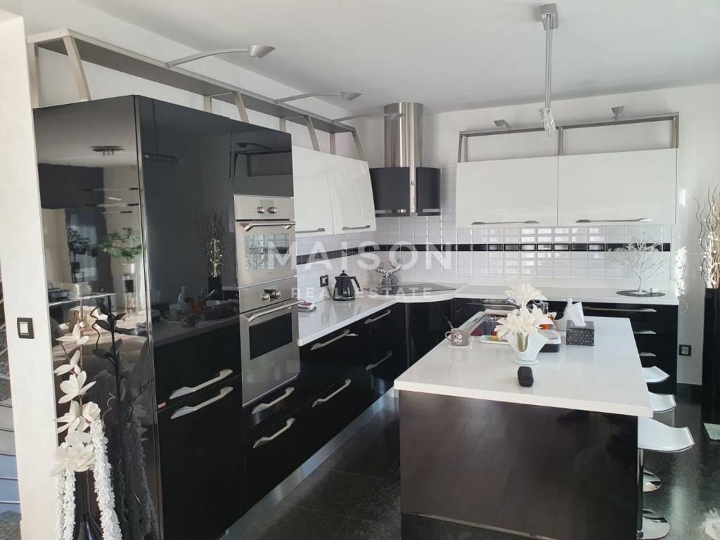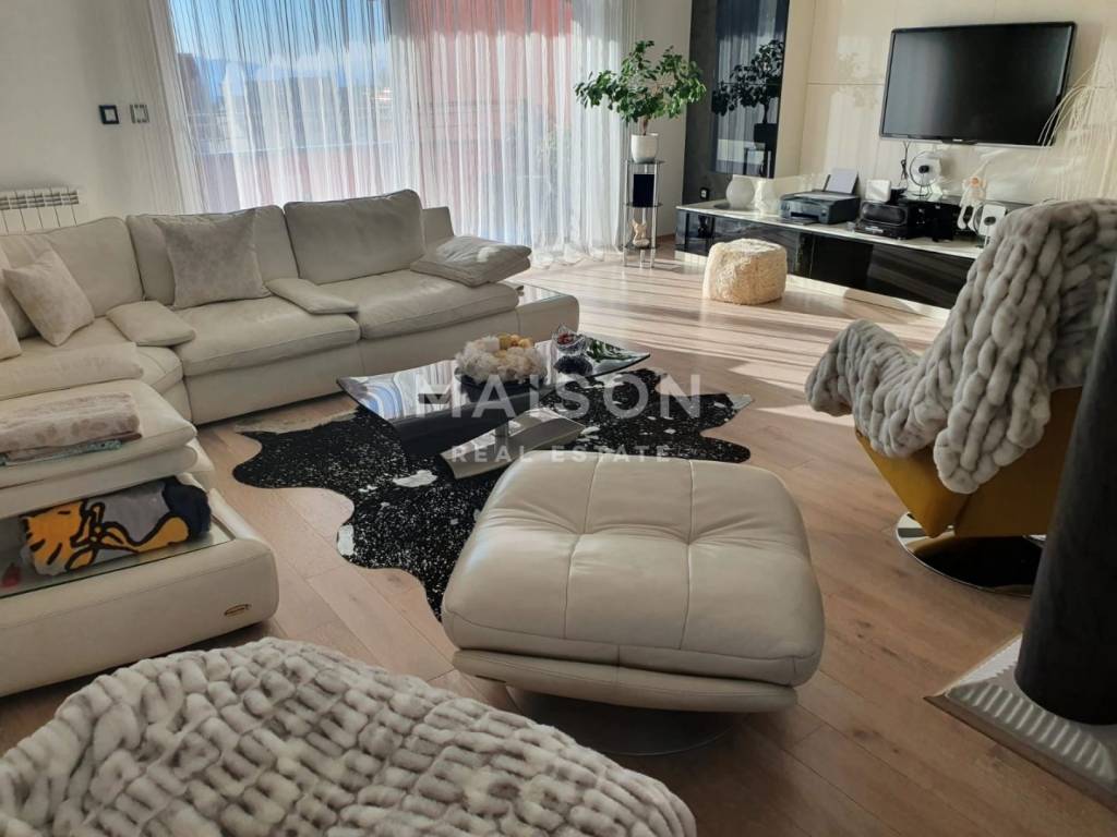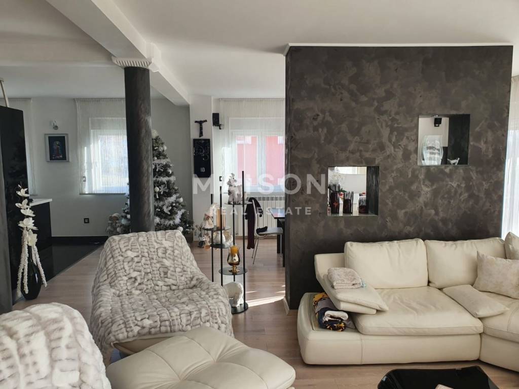 A modern two-level apartment of 220 m² for sale, located in a private house on the first floor and high attic. The apartment consists of three bedrooms, a spacious living room, a kitchen with dining area, two bathrooms and a balcony. The garden is beautifully landscaped and well maintained, and the property includes two outdoor parking spaces. Heating is central on gas, and the apartment is sold fully furnished. It is situated in a quiet and pleasant neighbourhood, close to all essential amenities – shops, restaurants, cafés, a bus stop and a gas station. This property offers the comfort of a family home and a high standard of living.
