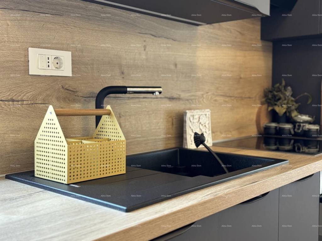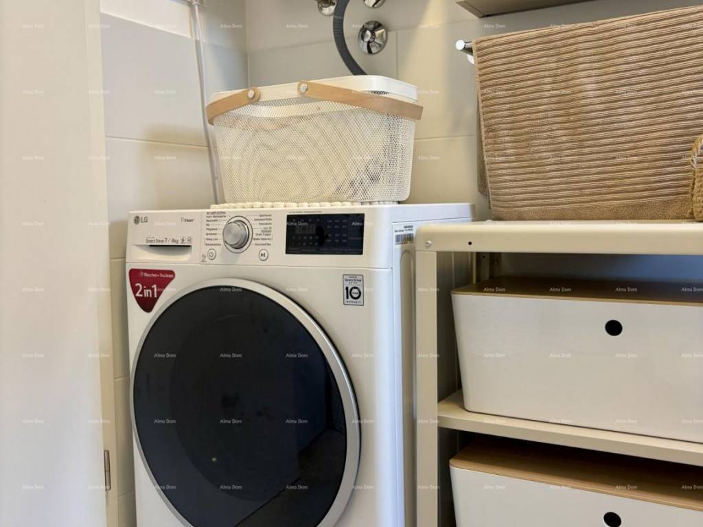 Carefully designed new apartment, built for personal living, located on the 2nd floor of a small building in a green area near the sea. Quiet neighborhood with developed infrastructure and fresh air.Size: 60.10 m² (usable area: 56.61 m²)Layout:• Hall – 4.94 m²• Bathroom – 5.70 m²• Storage – 0.84 m²• Bedroom 1 – 9.76 m²• Bedroom 2 – 9.78 m²• Open-plan kitchen/dining/living area – 22.09 m²• Terrace – 6.99 m²Equipment & amenities:• Daikin heating and cooling in every room• Wall-mounted infrared panels with thermostat• Honeywell smart system to control climate and boiler via phone• Electric blinds and mosquito nets on all windows• TV in each roomBathroom:• High-quality washer‑dryer combo• Ariston electric boiler (remote control)• Hans Grohe bathroom fittingsKitchen:• Custom‑made with built‑in dishwasher, refrigerator, oven and induction hobLiving room:• Comfortable sofa, glass display cabinet, wine fridgeSecurity & quality:• Anti‑burglary entrance door, premium PVC joinery• Well‑maintained building and shared areasThe apartment is sold fully furnished and equippedInfo:+385 91 611 5706azra@almadominvest.com