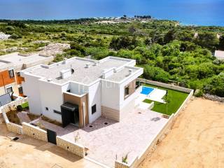 The villa includes a total of 3 parking spaces. Large-format tiles (120x120 and 60x60) are used for the floors, while high-caliber PVC windows and lift-and-slide doors (with 5 chambers, electric blinds, and mosquito nets) complete the sophisticated look. Each of the bathrooms is equipped with a walk-in shower.