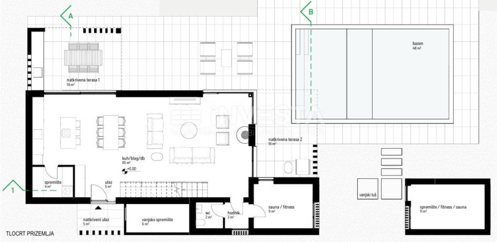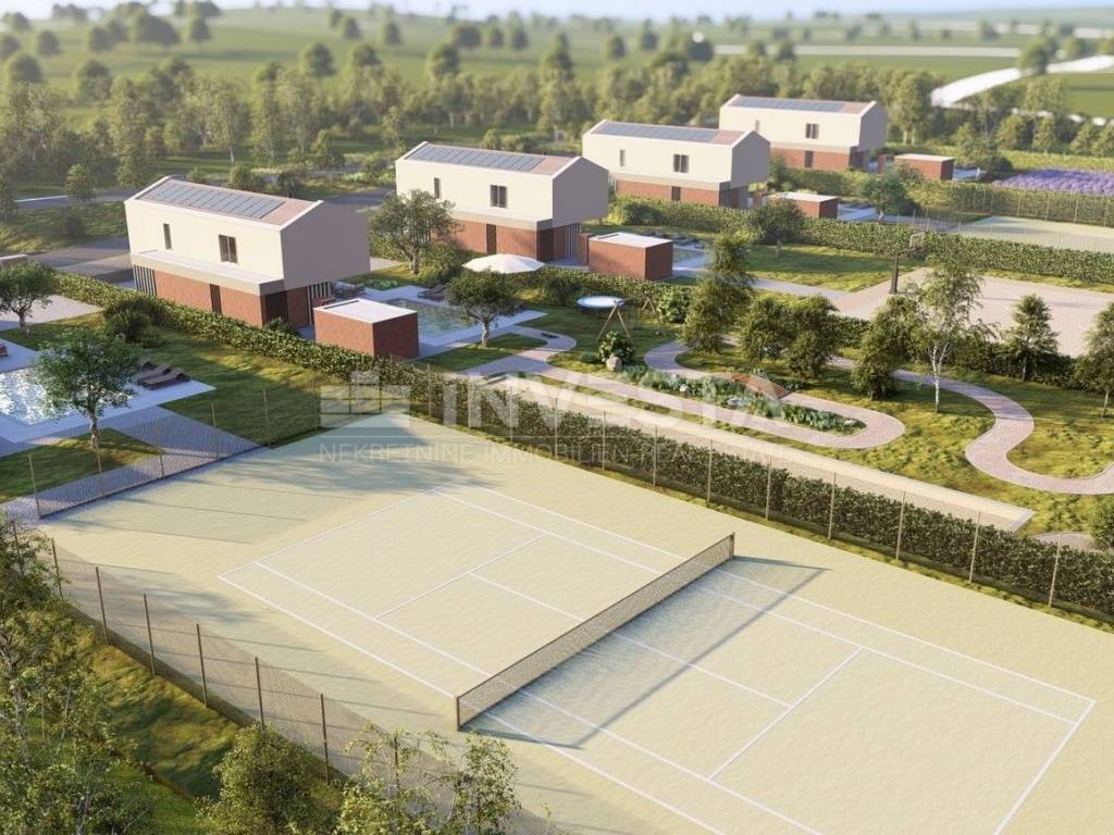 In the peaceful surroundings of the Istrian landscape, not far from the historic town of Labin, Villa A is located – one of five luxury villas in an exclusive project. This modern villa spans two floors with a carefully designed layout and top-tier amenities, offering the ideal combination of comfort, functionality, and privacy.