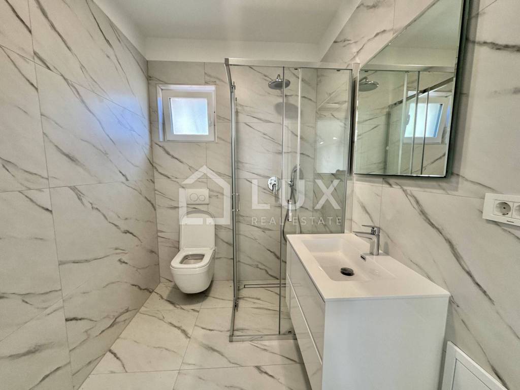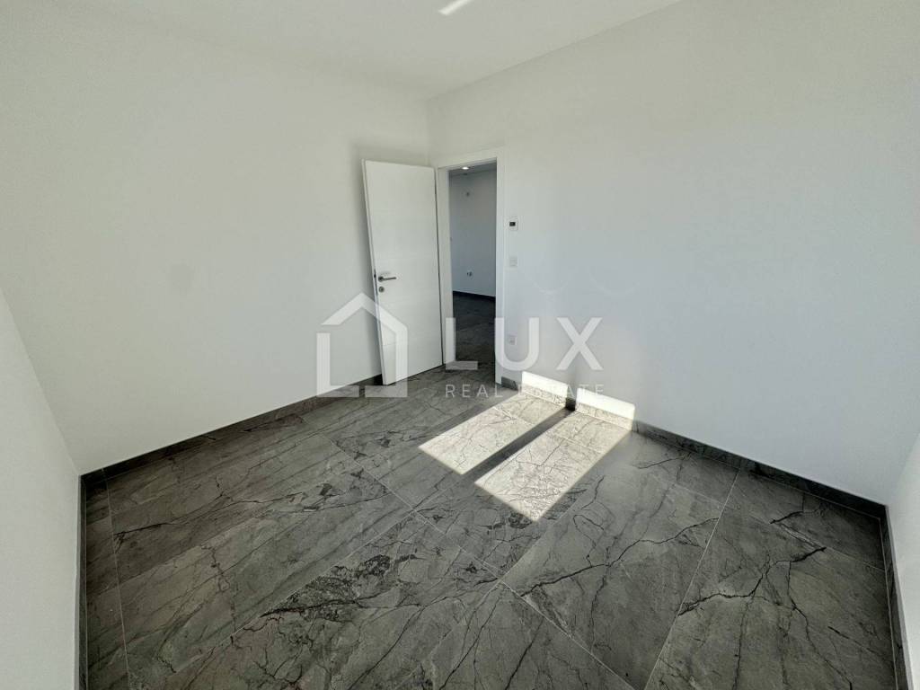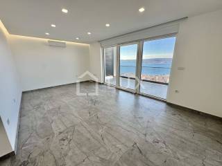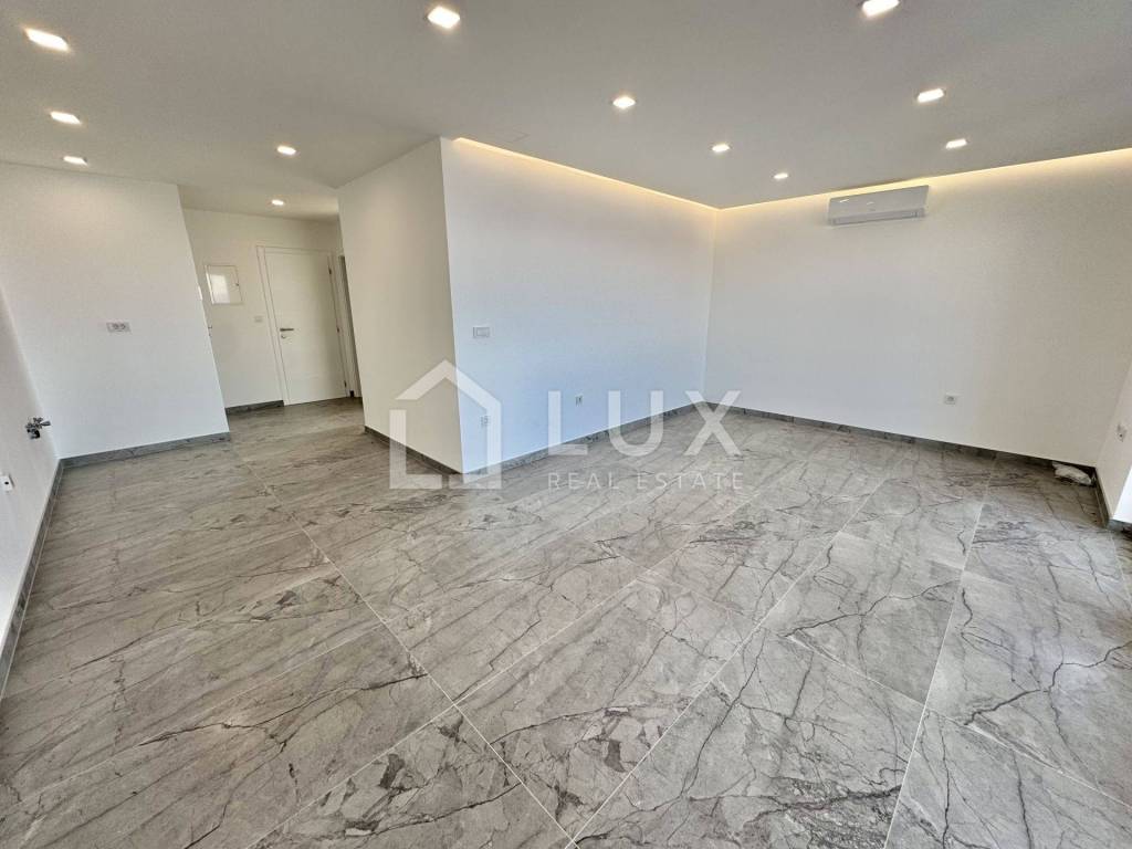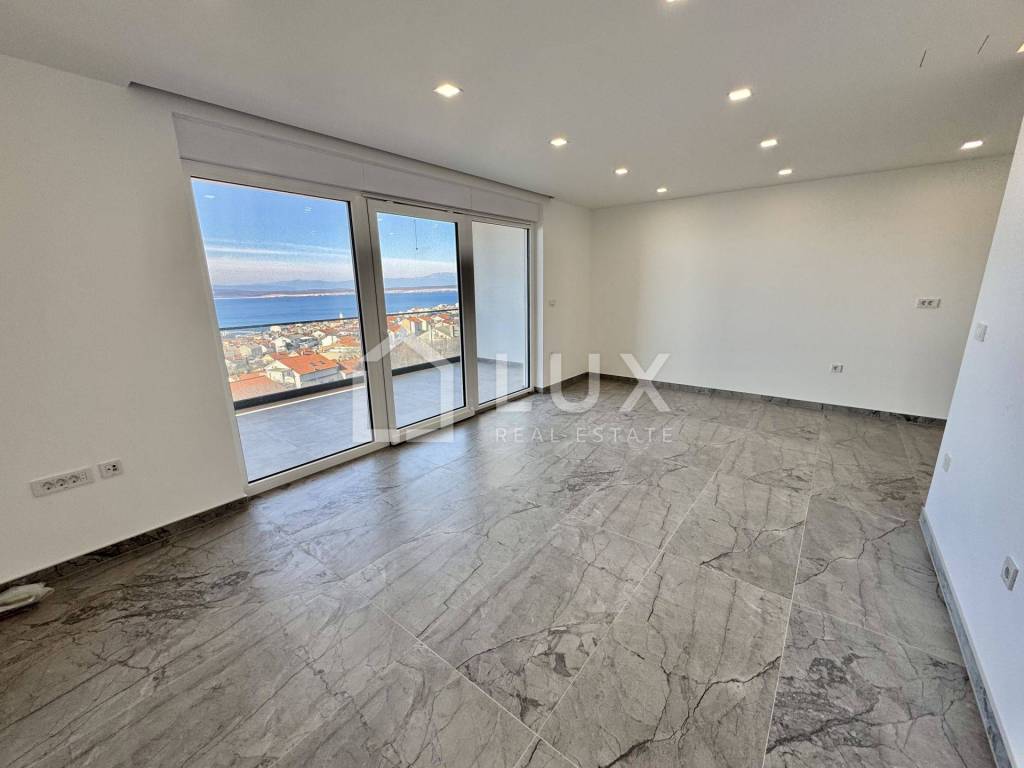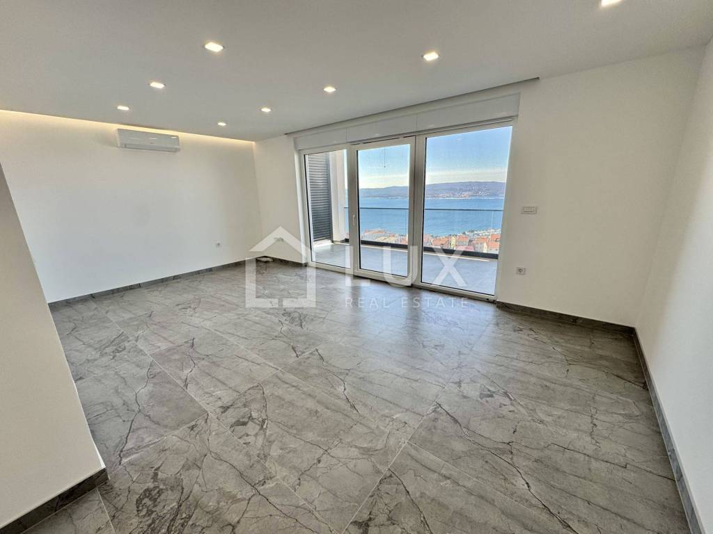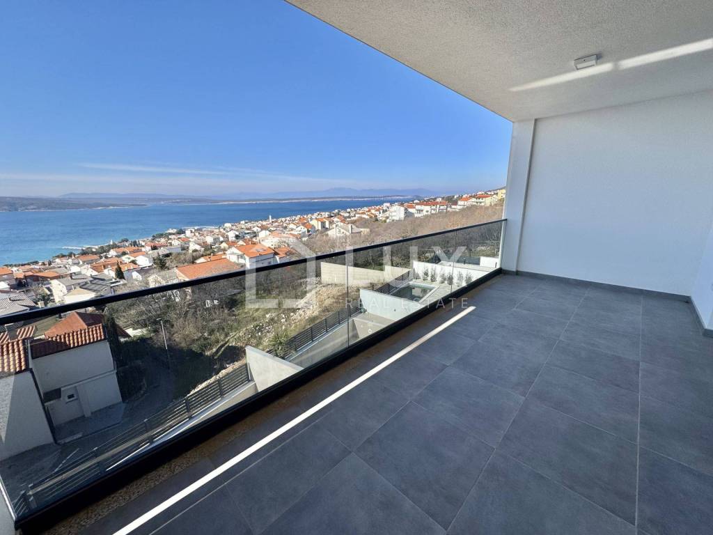 It consists of a living room with a dining room and a kitchen, two bedrooms, a bathroom and a spacious terrace with a beautiful panoramic view of the sea and the island of Krk. The apartment has two parking spaces. It is equipped with PVC carpentry, electric aluminum blinds, air conditioning and underfloor heating that extends throughout the entire surface of the apartment.