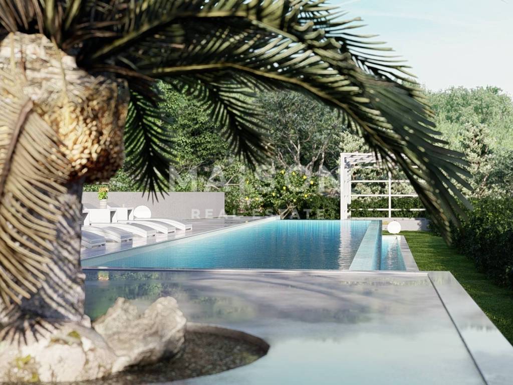 The beautifully landscaped exterior features a 60 m² swimming pool with a spacious sun deck, as well as a terrace with an outdoor kitchen and BBQ - perfect for embracing the Mediterranean lifestyle.