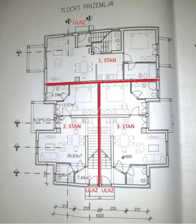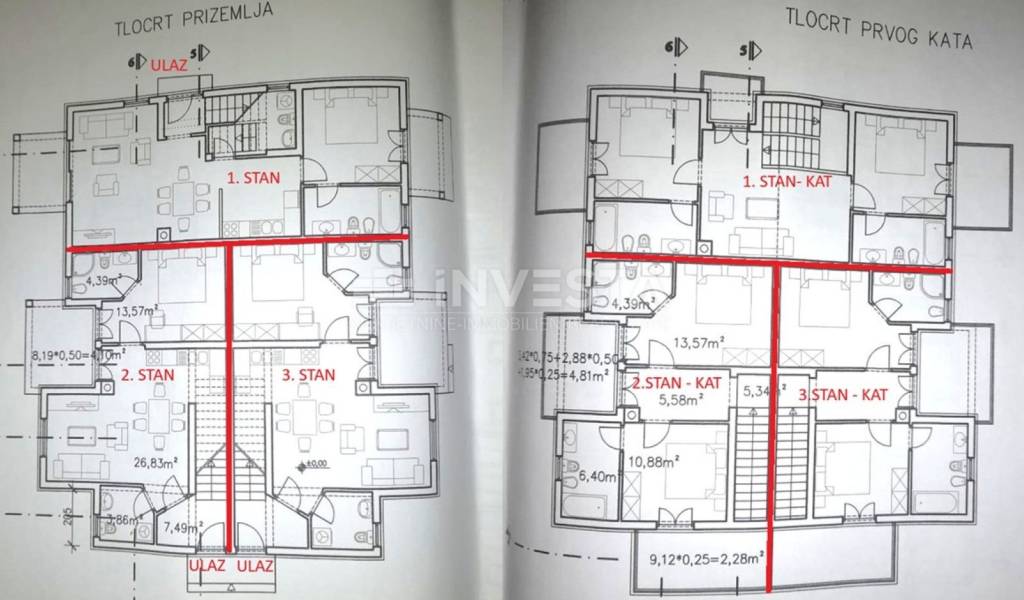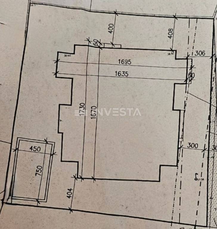 For sale is a construction plot of 640 m² in Barbariga, with an issued building permit for the construction of three residential units. The plot has an issued building permit for a P+1 project, with a total gross area of 488 m², a net usable area of 366 m², and a 34 m² pool.