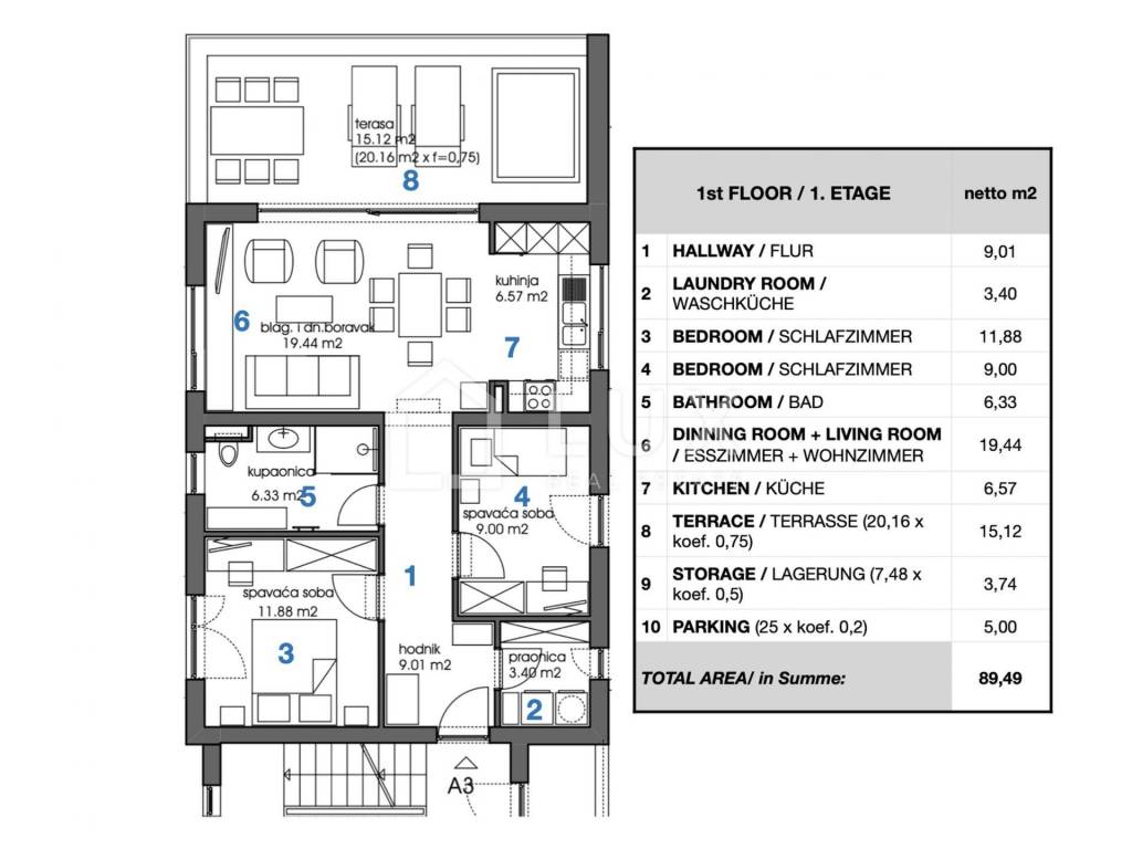 Located in a new, top-quality building, which is currently under construction, this 89,49 m² apartment is ideal for family life or as a profitable investment.