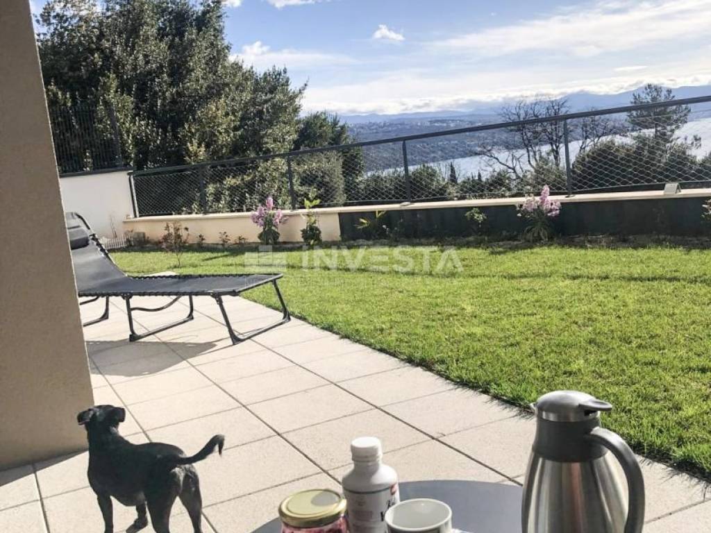 OPATIJA – Three-room apartment with a sea view, private yard, and garage space in a high-quality new building