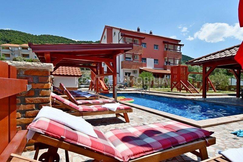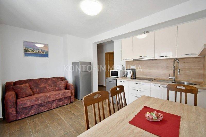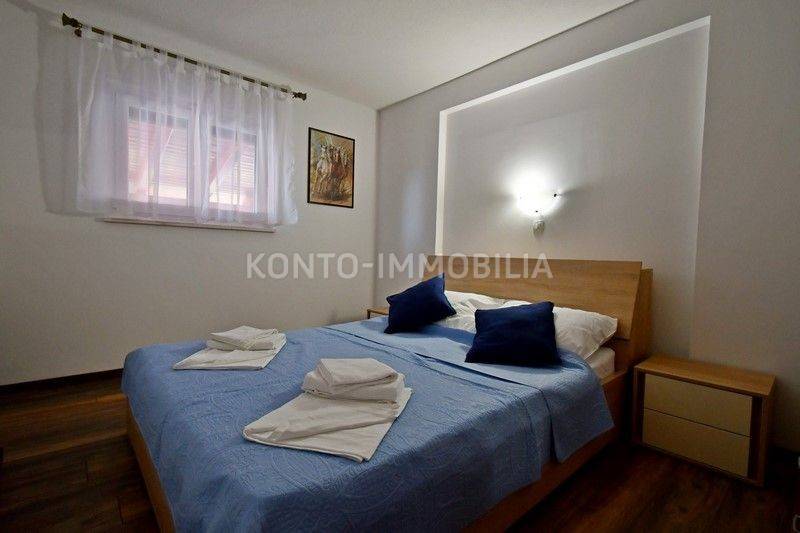 The entire floor of the building is for sale - the ground floor, with a total net usable area of 96.43 m2, which consists of two separate apartments, a two-room apartment and a one-room apartment, with a storage room. Both apartments are fully furnished and equipped with all appliances and air conditioning. Ceramics on the floors. The energy class of the building is A. The yard is extremely nicely decorated, swimming pool, garden, garden house with barbecue and outdoor kitchen, children's playground. Own parking in the garden. Only 5 minutes to the beach. walks.