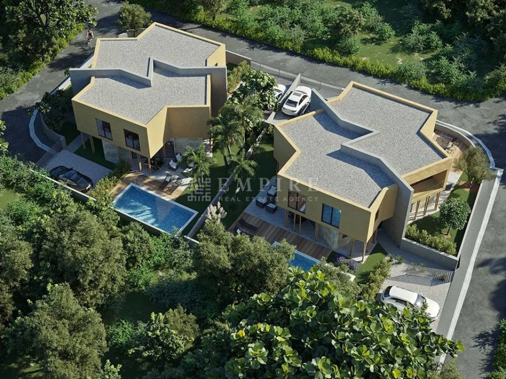 These two two-story houses are located near Brtonigla and offer four elite residential units. When designing these buildings, we focused on three principles – spaciousness, modernity, and comfort. Each residential unit has 116 square meters, an outdoor pool, and two parking spaces. Whether you use your two-story apartment for vacation or everyday life, it will provide pleasure at every step – in the open living space on the ground floor, one of the three bedrooms upstairs, or under the olive tree by the pool. The property fully reflects contemporary architecture and will be an ideal home for a modern family who loves life.