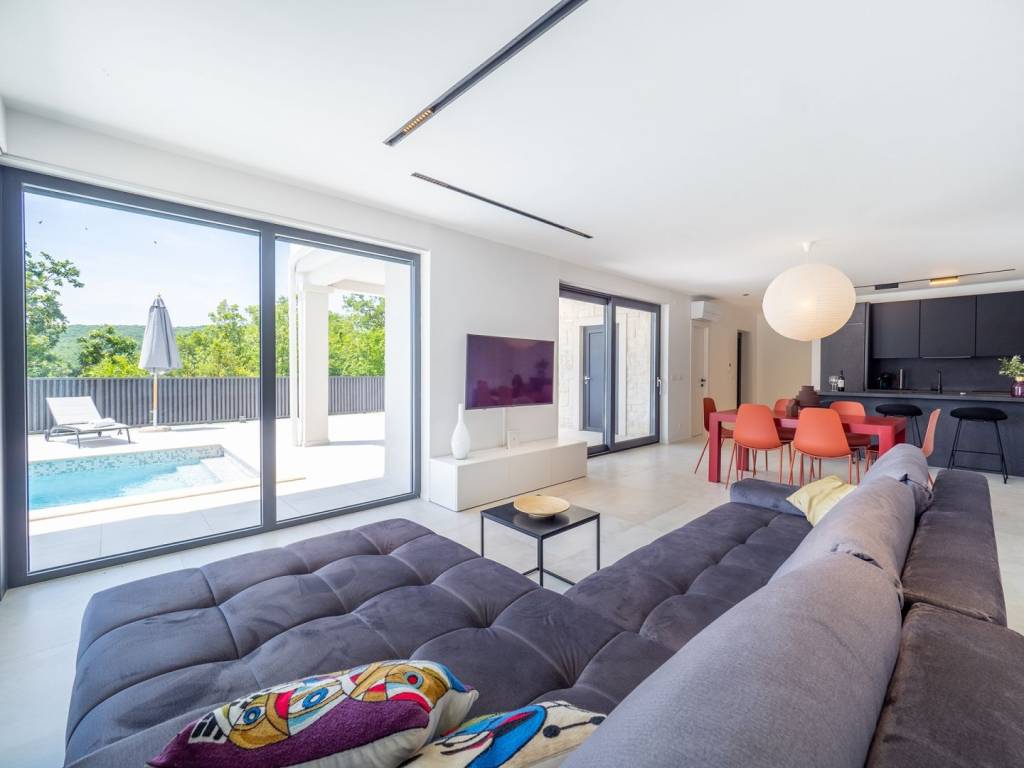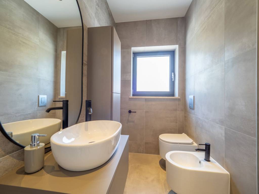 In a quiet location near the wooded hills, in the settlement of RISIKA on the ISLAND OF KRK, is this luxurious house with a heated pool, perfectly integrated into the natural environment and only 500 meters from the sea. With an area of 150 m² spread over two floors, it offers a modern lifestyle, comfort and privacy. On the ground floor of the house there is an elegant entrance area, a spacious living room with kitchen and dining room that naturally open onto a covered terrace of 30 m² and a sundeck. The ground floor also includes a storage room with preparation for a sauna, a toilet, a storage room, a laundry room and an internal staircase leading to the first floor. On the first floor there are three modernly decorated bedrooms, each with its own bathroom. Two rooms have access to a covered terrace of 15 m², while the third leads to a loggia of 3 m² with a sea view. The house is built with top quality materials and equipped to high standards: underfloor heating on the ground floor, five air conditioners, video surveillance, wireless internet, aluminum joinery, security doors and preparation for an indoor and outdoor fireplace. The yard is beautifully landscaped and offers a heated swimming pool and two parking spaces. This property in Risika offers the perfect combination of luxury, privacy and proximity to the sea and represents an excellent opportunity for a quiet family life or an investment in a tourist rental. Contact us for a viewing and additional information.