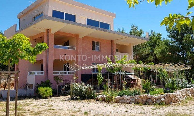 For sale is a beautiful, detached house with a garden on the island of Rab, just a five-minute walk from the sea. It was built in 2015 with complete and valid construction documentation. The land area is 1450 m². This modern property with a total area of ​​533 m², of top quality construction, consists of four floors connected by an external covered staircase, with each floor having a separate entrance. The entire building has a thermal facade, and the flat roof is thermally and soundproofly insulated and completely waterproof.