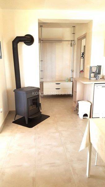 The raised ground floor consists of a three-room apartment with an internal area of ​​74 m². A spacious open-plan living room with a fireplace, a modern fully equipped kitchen and a dining room create a harmonious and functional space. The apartment has two bedrooms, a large bathroom with a shower, two covered balconies (16 m² and 12 m²) and a view of the garden, the village and a partial view of the sea. The floors are tiled, the apartment is furnished and equipped with SAT-TV and air conditioning.