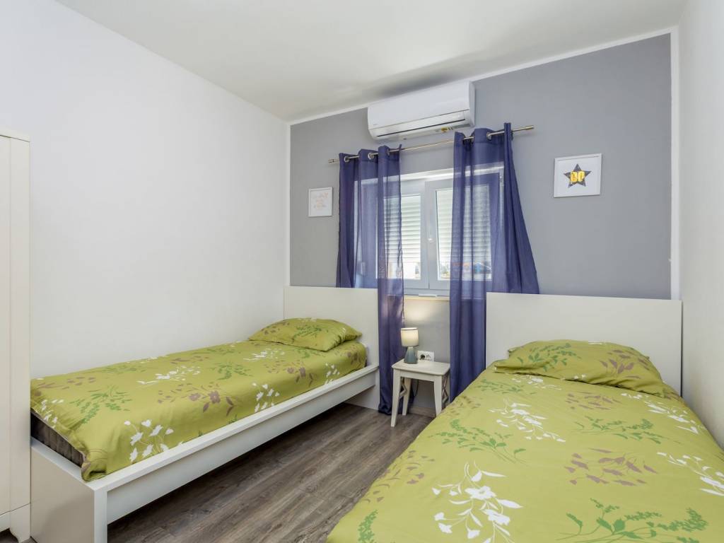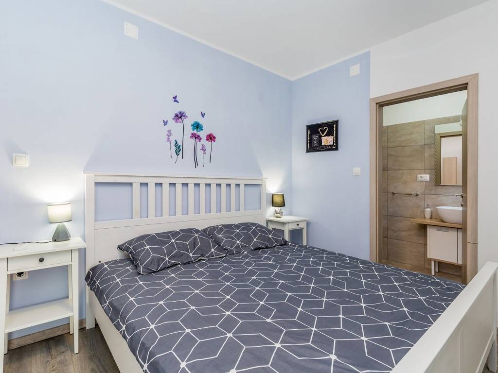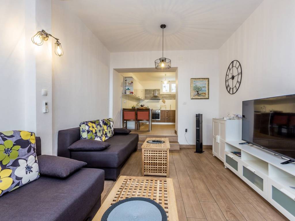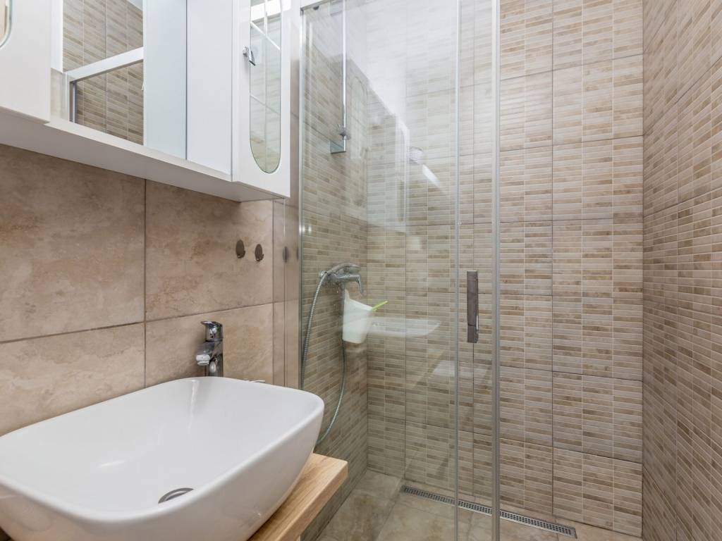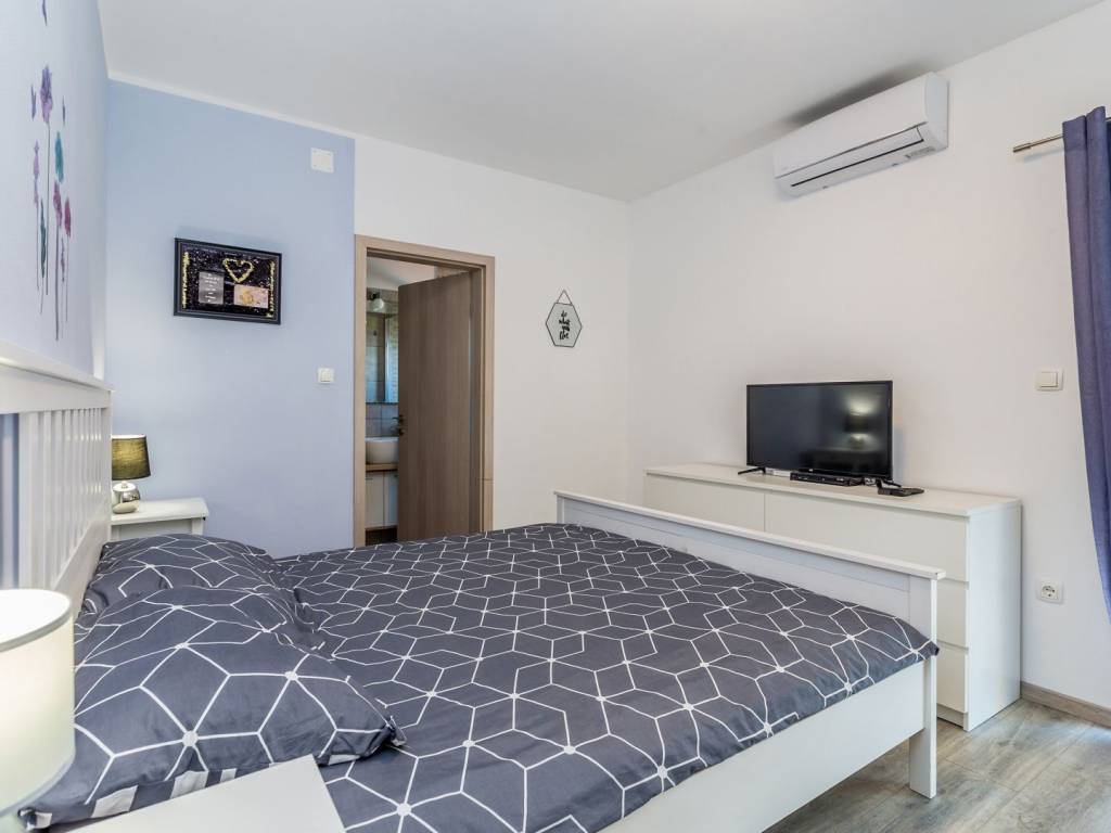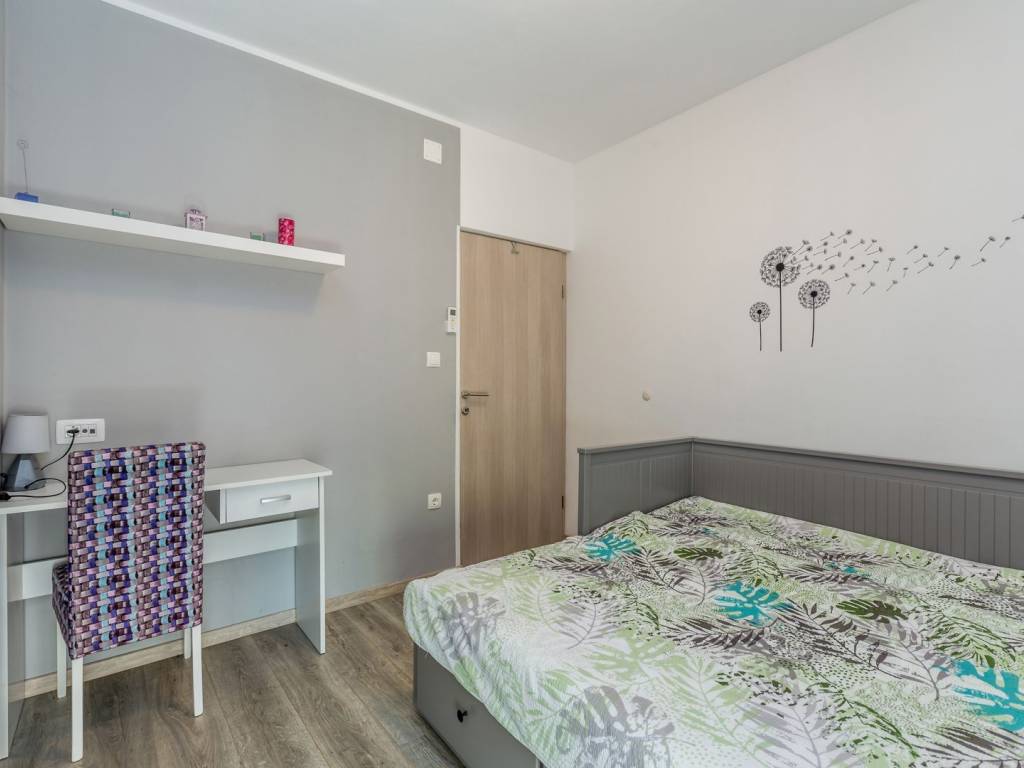In a quiet location near the town of Krk, this charming stone terraced house is located, ideal for relaxing and enjoying the Mediterranean lifestyle. Combining traditional architecture with modern amenities, this property offers the perfect blend of authenticity and luxury. The house extends over three floors – ground floor, first floor and a spacious roof terrace. The ground floor has a comfortable living room with kitchen and dining area, additional toilet, storage room, tavern and a specially decorated entertainment room. Upstairs are four elegant bedrooms, each with its own bathroom, dressing room, additional toilet and terrace with heated pool. An external staircase leads to a spectacular 22 m² roof terrace, where you can enjoy a jacuzzi and unforgettable panoramic views, especially towards the island of Cres. The house is sold fully furnished and equipped for maximum comfort. The garden has enough parking spaces for several vehicles, and the entire environment provides peace and privacy necessary for a complete vacation. If you are looking for a unique property on Krk that combines luxury, views and authentic charm, this house is a choice that rarely appears.