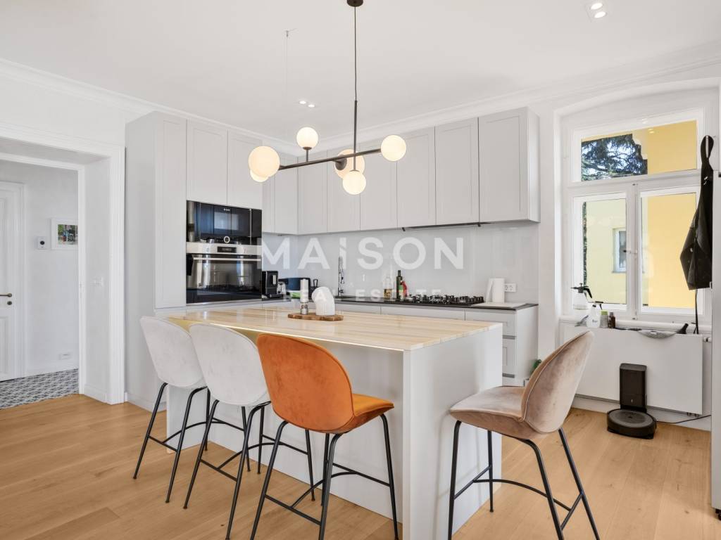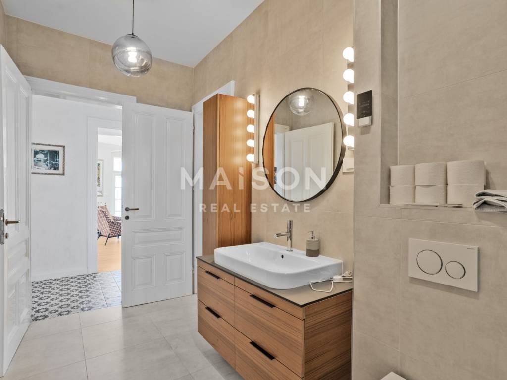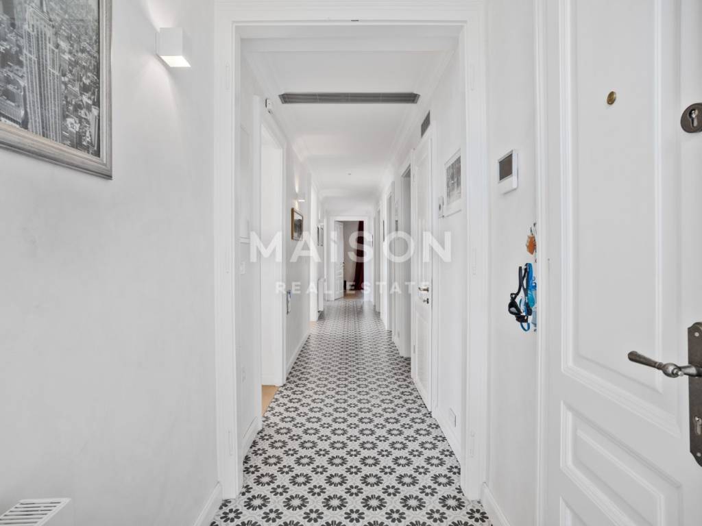 Bright and sun-filled, the apartment is modern and stylishly furnished, featuring high-quality furniture and carefully selected details.